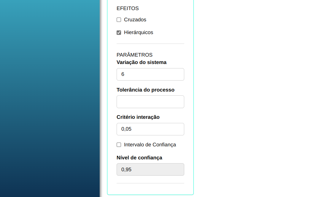 | Interação | 18 | 0.000076 | 0.000004 | 2.33606 | 0.0074 |
