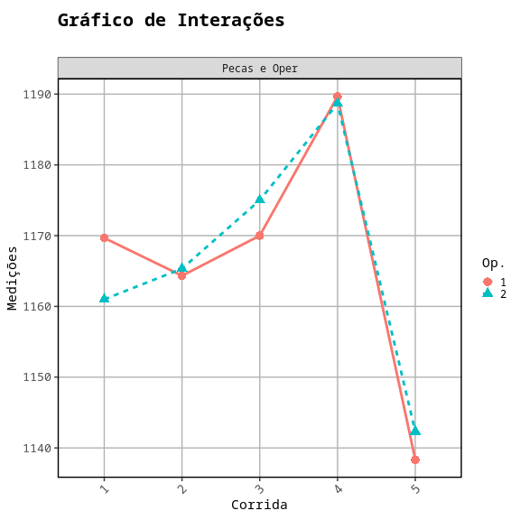 | Peças/Operadores | 8 | 7608.667 | 951.083 | 7.897 | 0.000 |
