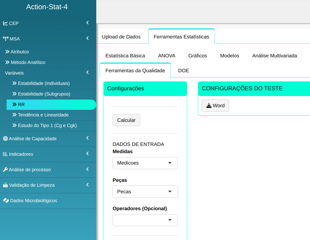 Em seguida. clique em Calcular para obter os resultados. Também é possível gerar as análises e baixar em formato Word.