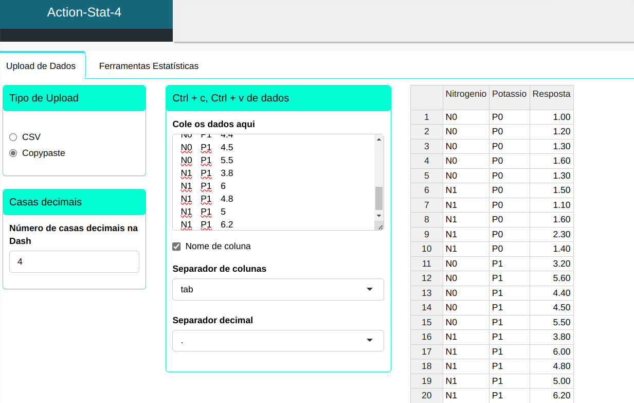 | Nitrogênio | Potásio | Resposta |