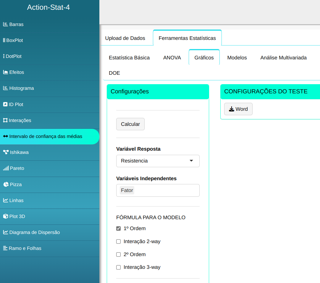 Em seguida, clique em Calcular para obter os resultados. Também é possível gerar as análises e baixá-las em formato Word.
