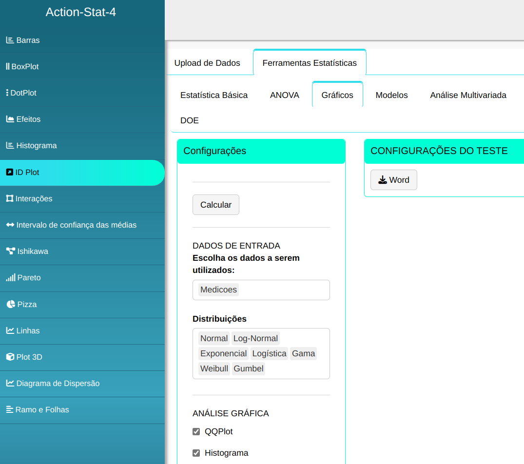 Em seguida, clique em Calcular para obter os resultados. Também é possível gerar as análises e descarregá-las em formato Word.
