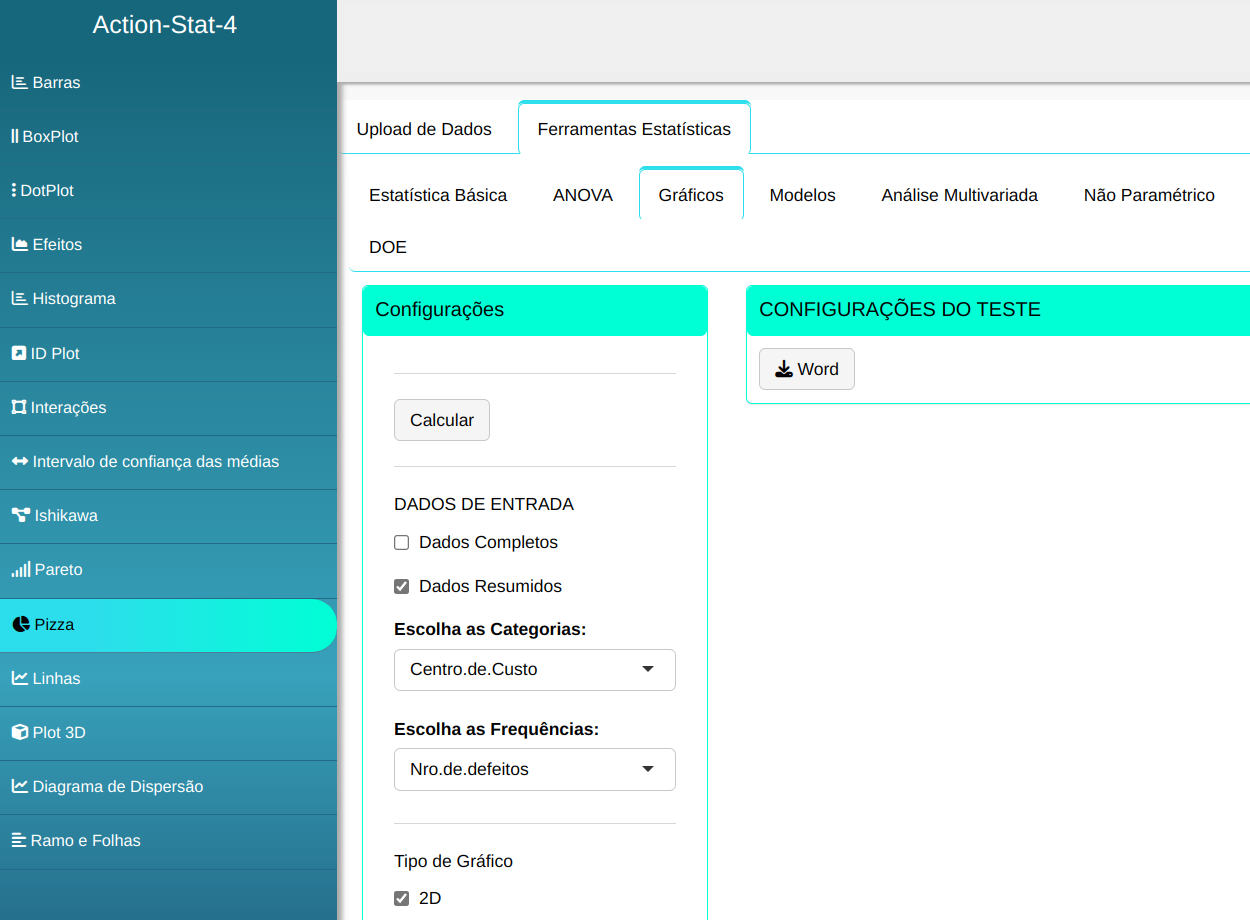 Em seguida, clique em Calcular para obter os resultados. Também é possível gerar as análises e descarregá-las em formato Word.