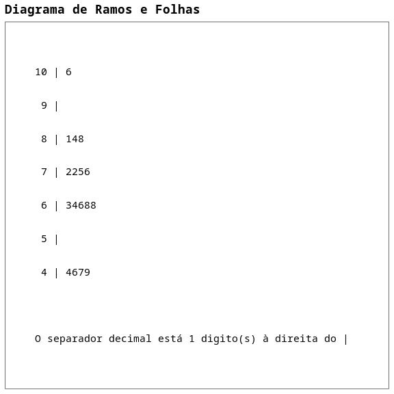 O gráfico de ramos e folhas é elaborado, conforme a configuração apresentada na figura abaixo.