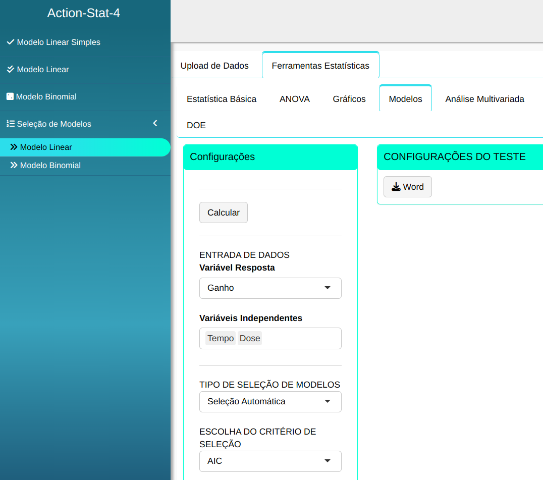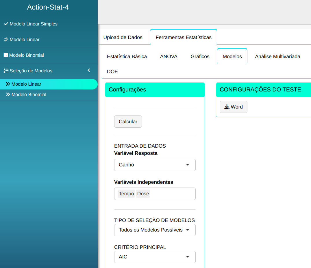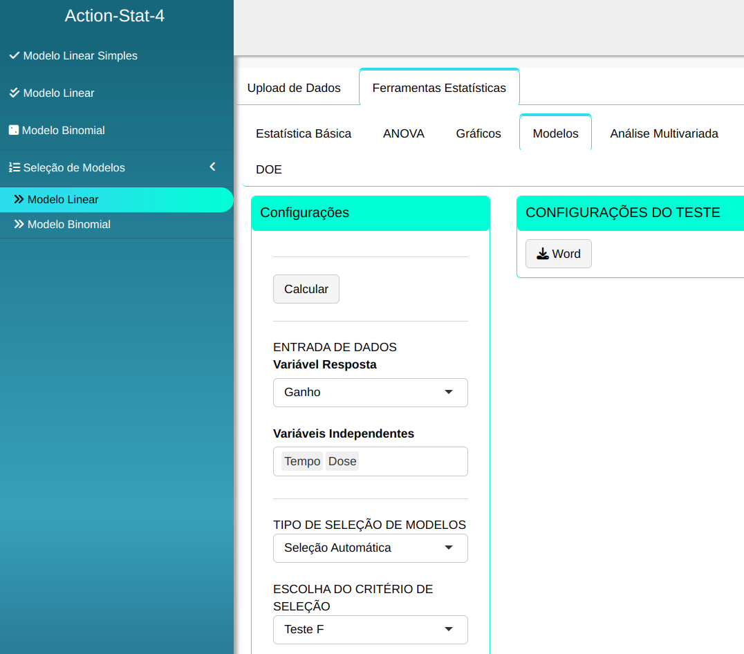 Clique em Calcular para obter os resultados. Também pode baixar os resultados no formato Word.