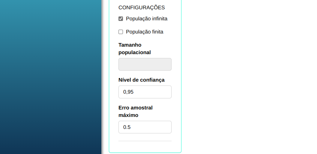Então calcularemos o tamanho da amostra considerando os seguintes valores