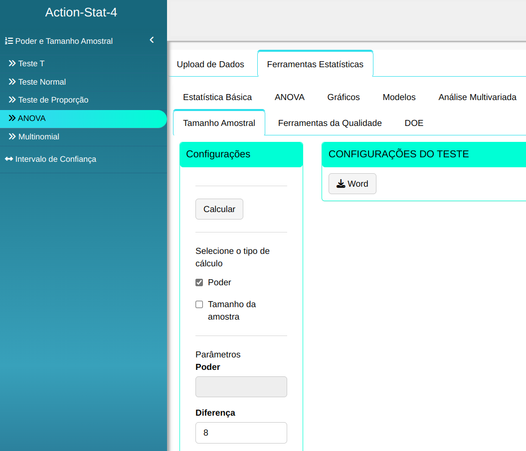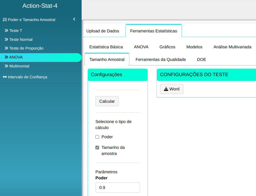 Em seguida, clique em Calcular para obter os resultados. Também é possível gerar as análises e descarregá-las em formato Word.