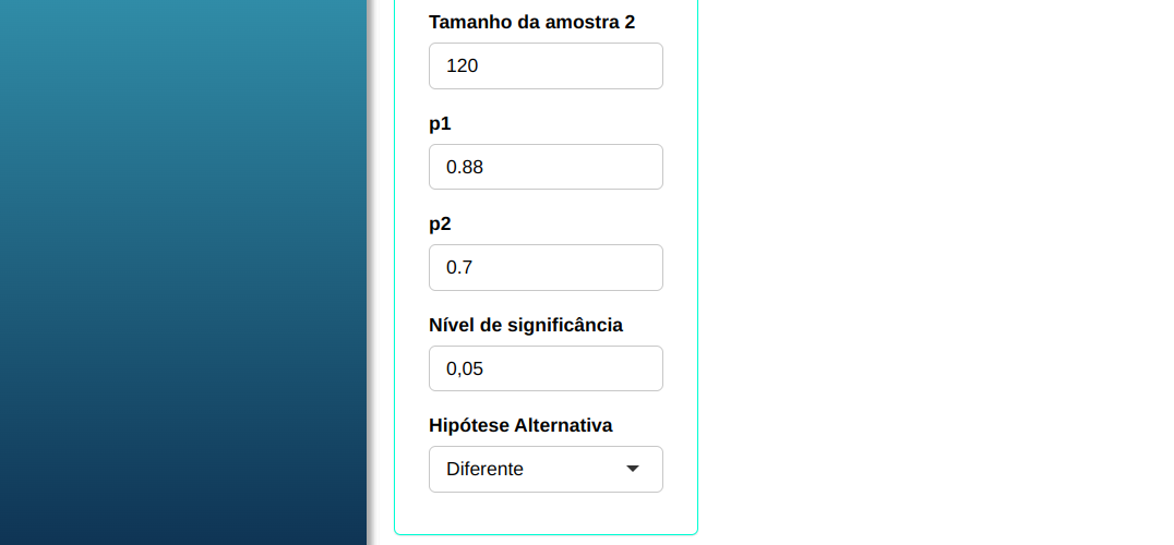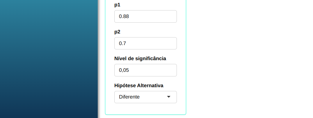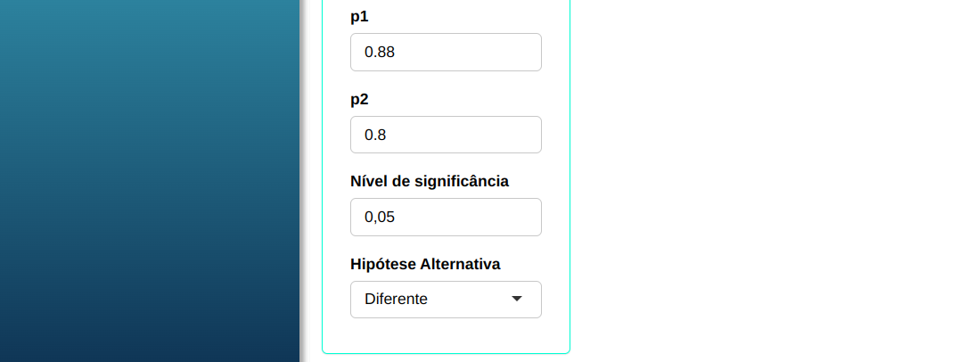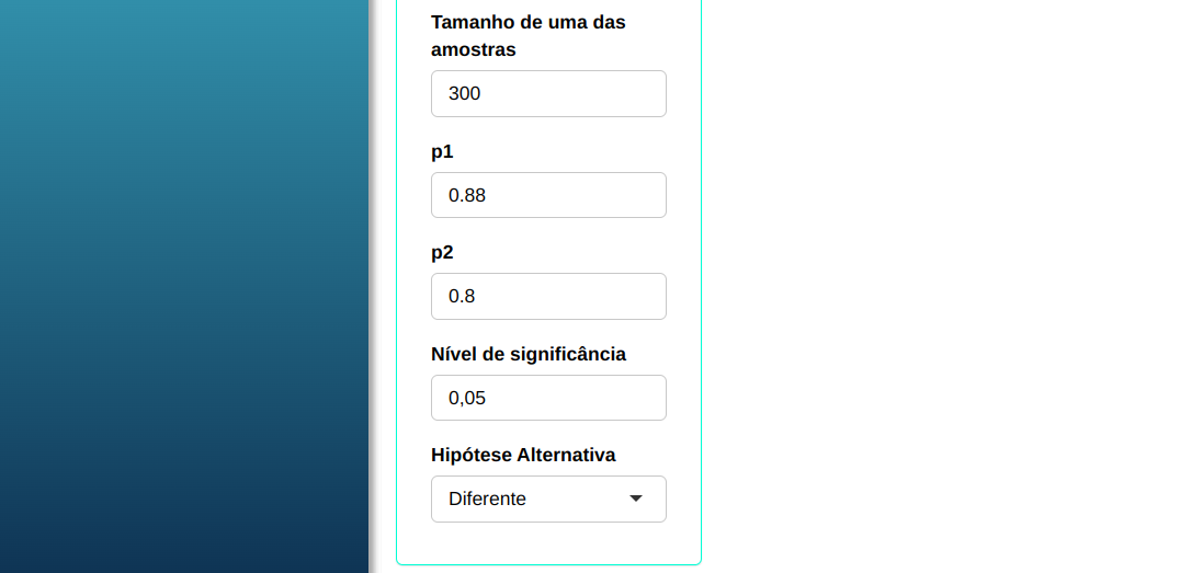 Aqui o teste de uma proporção é utilizado para calcular o poder do teste ou o tamanho da amostra.