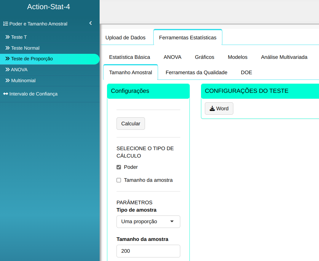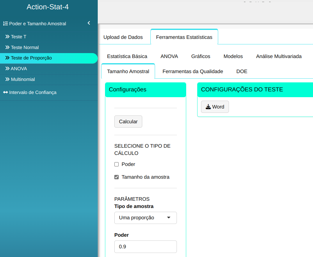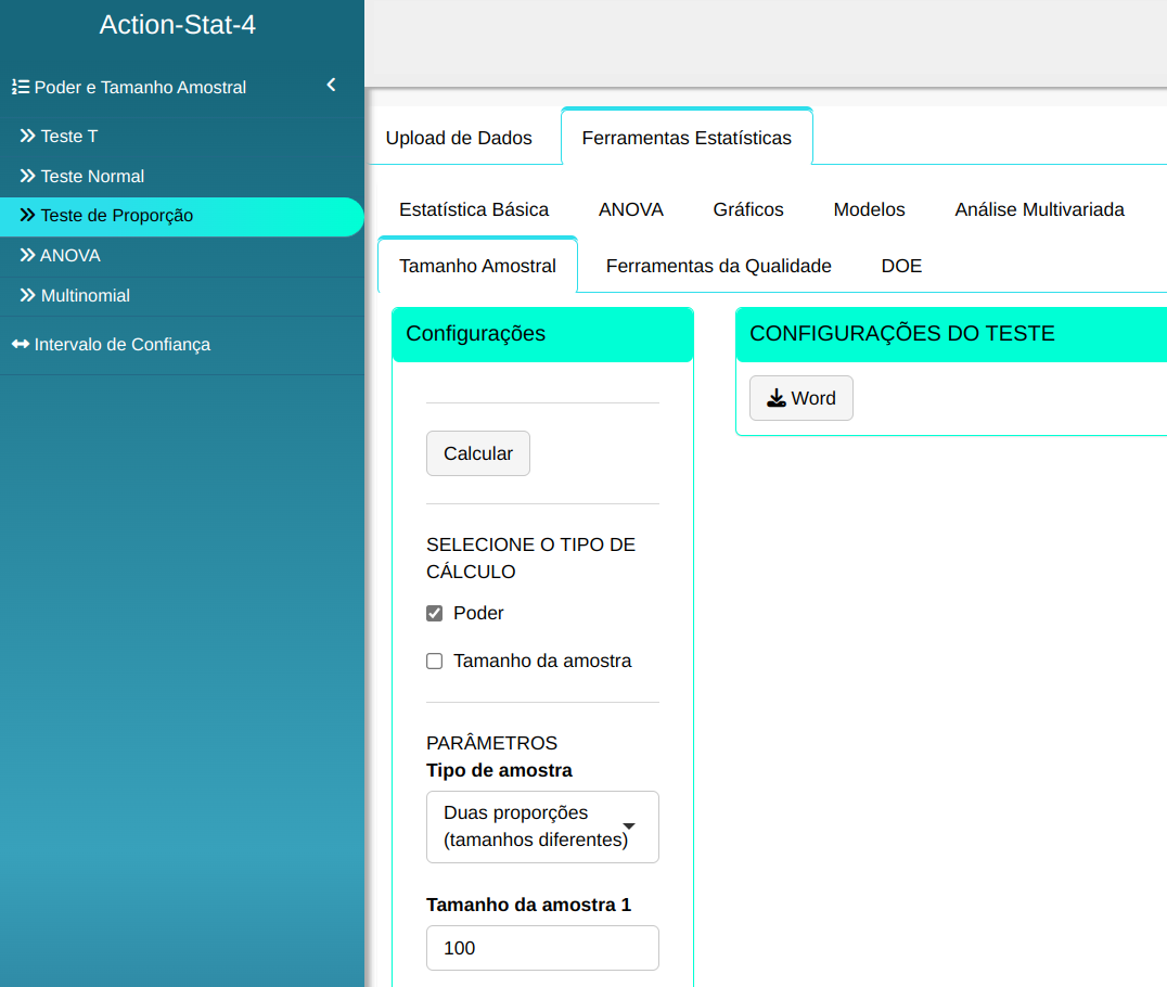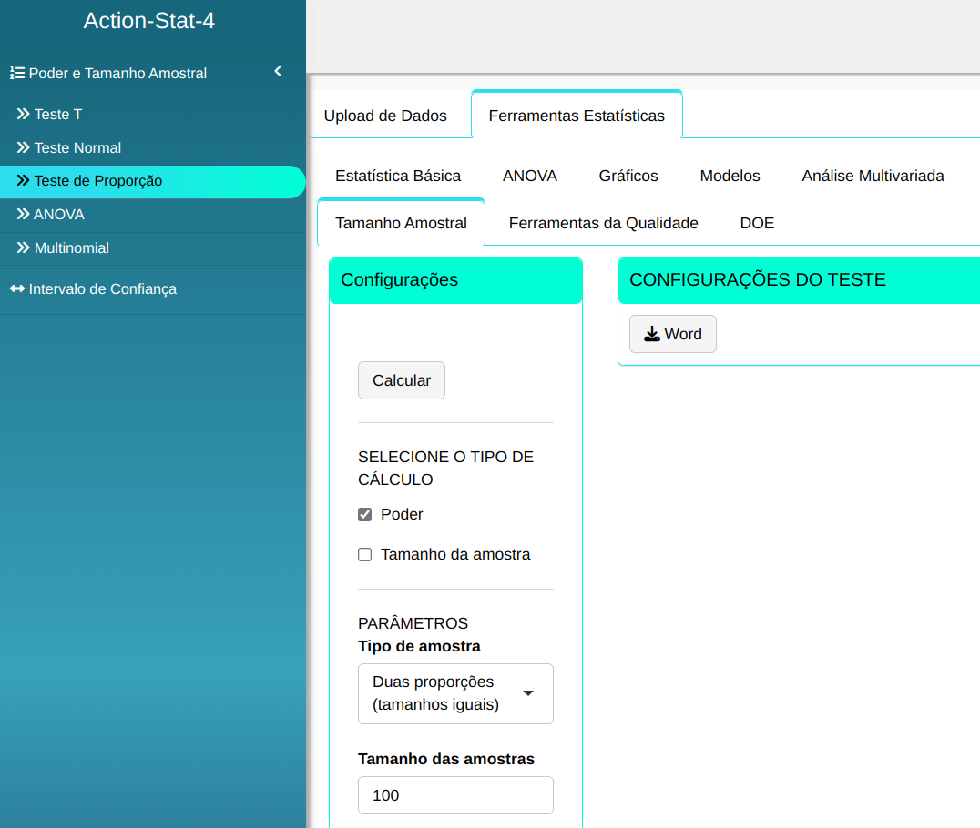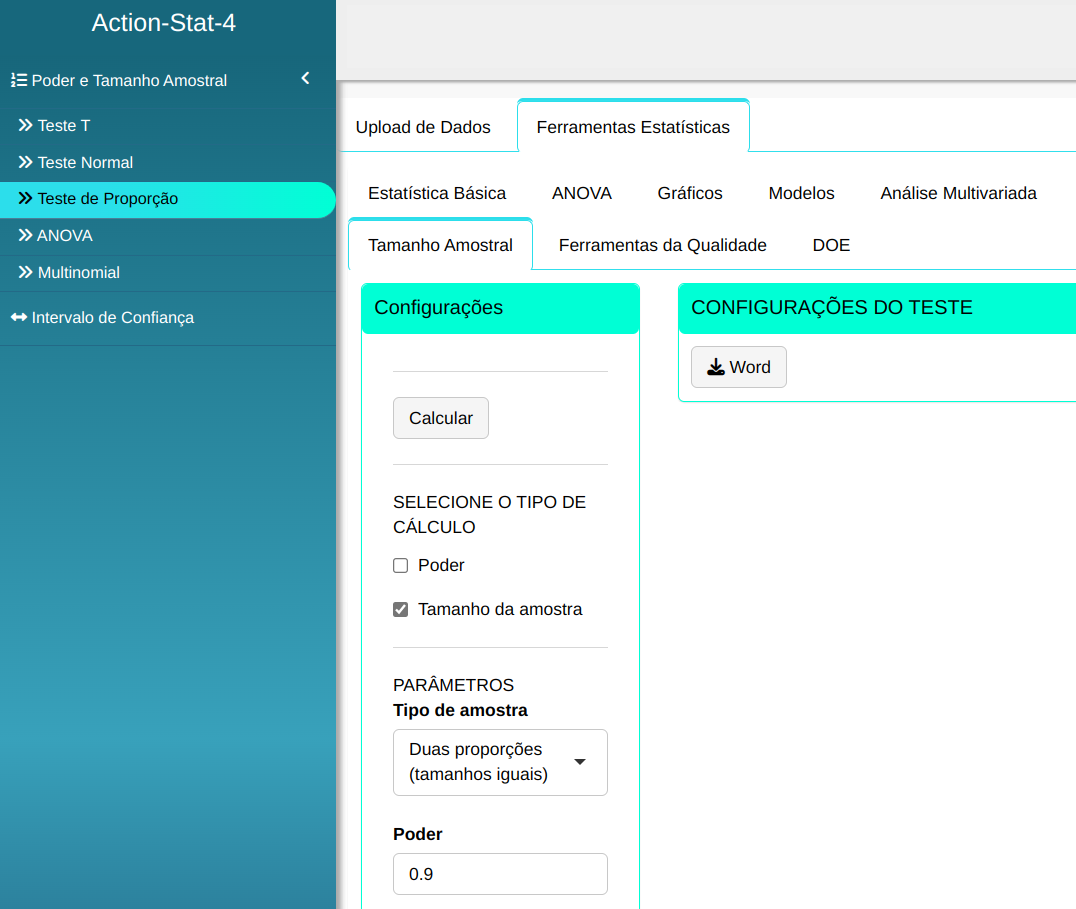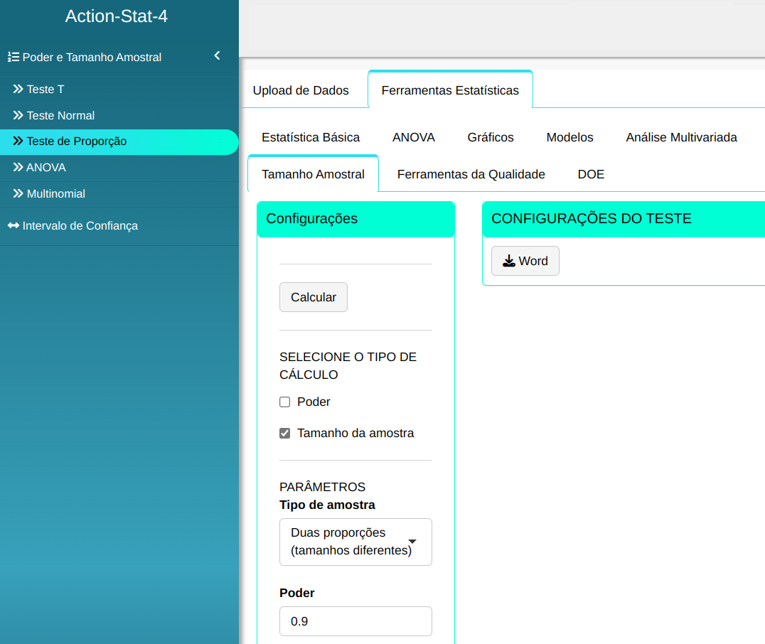Em seguida, clique em Calcular para obter os resultados e também é possível gerar as análises e descarregá-las em formato Word.