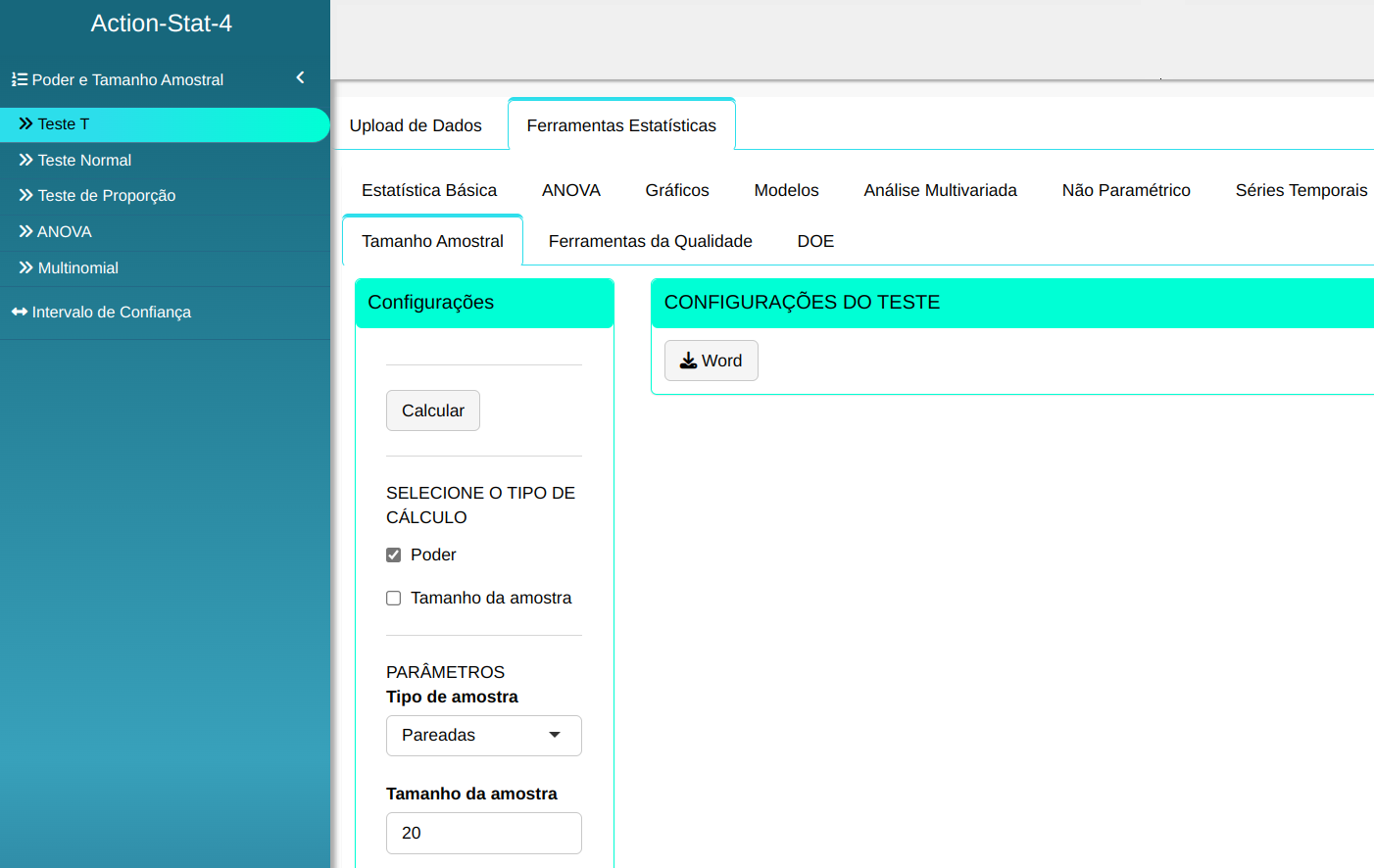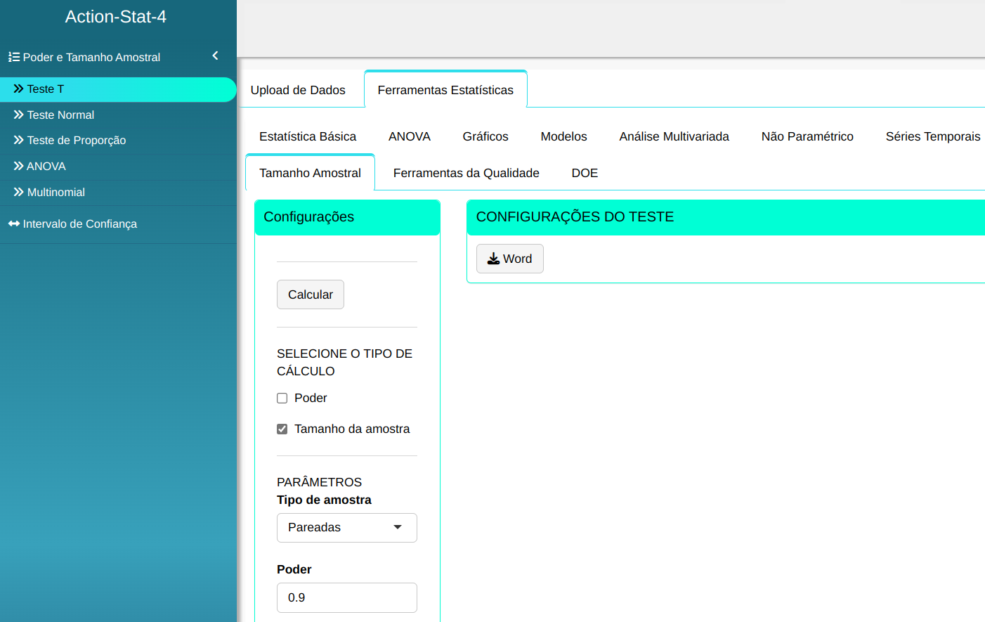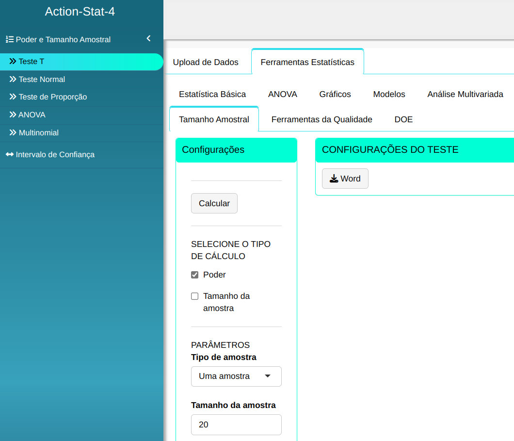 Aqui o Teste T é utilizado para calcular o poder do teste de hipóteses ou o tamanho da amostra.