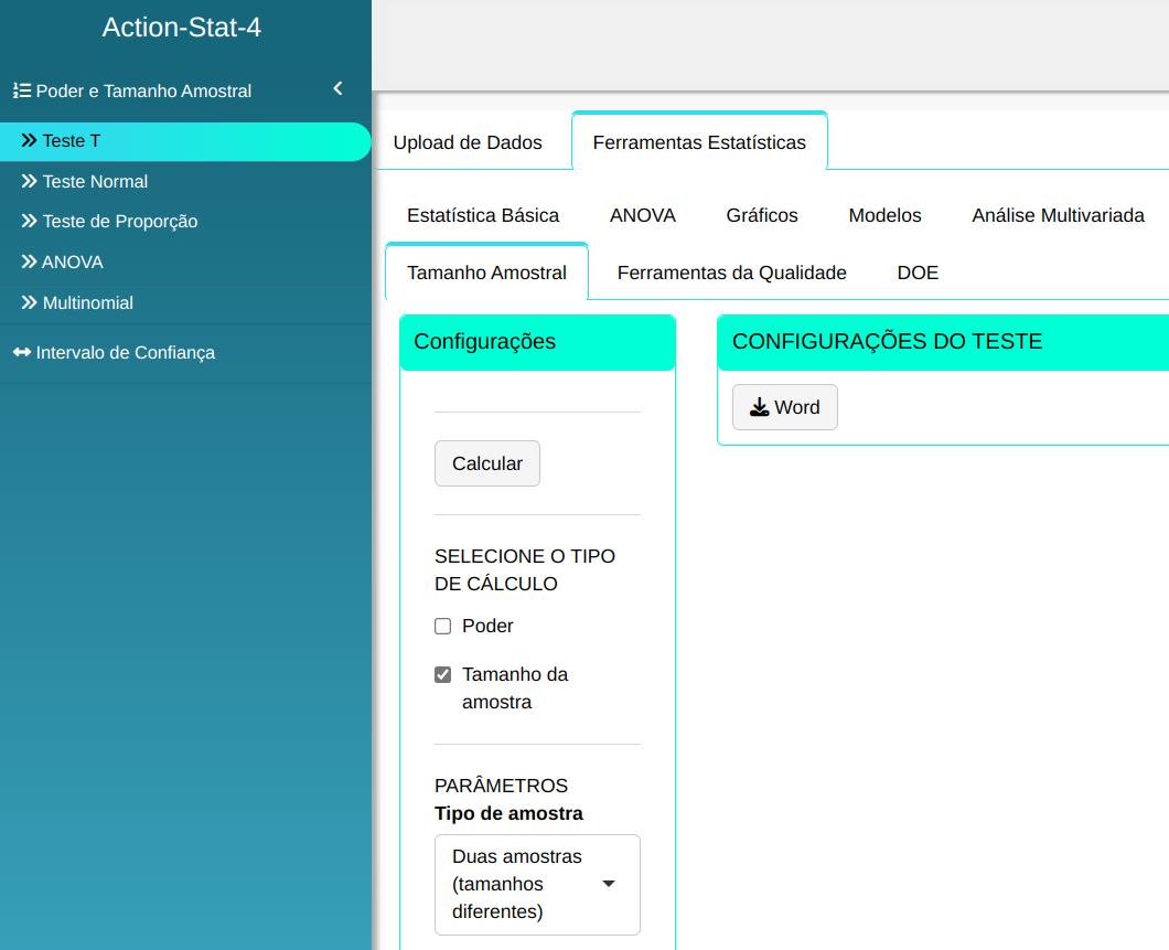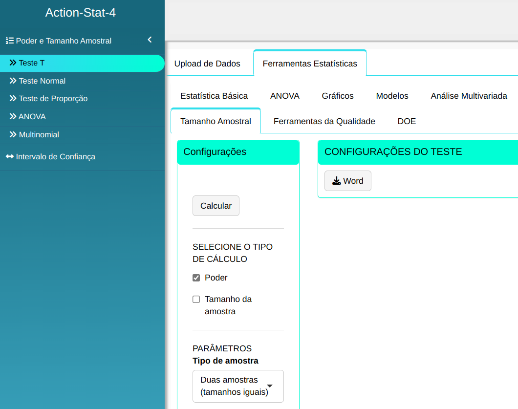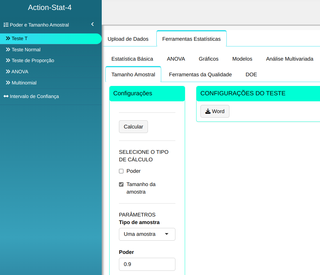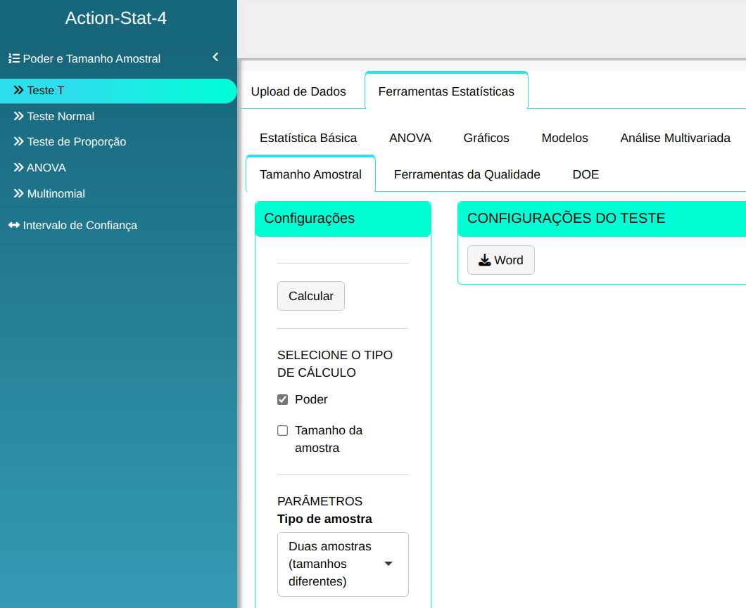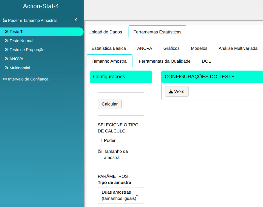 Em seguida, clique em Calcular para obter os resultados. Também é possível gerar as análises e descarregá-las em formato Word.