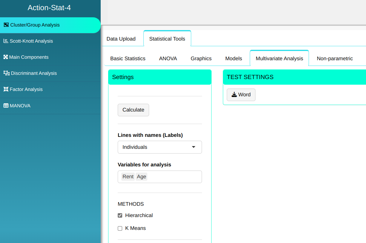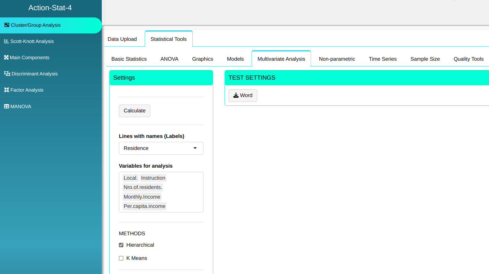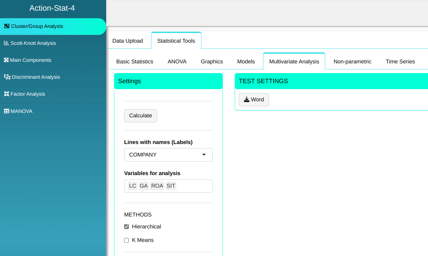 Then click Calculate to get the results. You can also generate the analyses and download them in Word format.