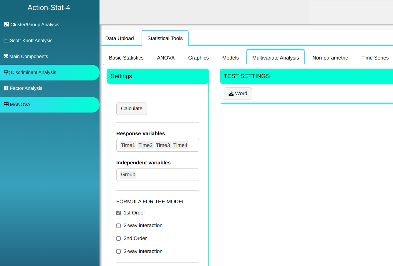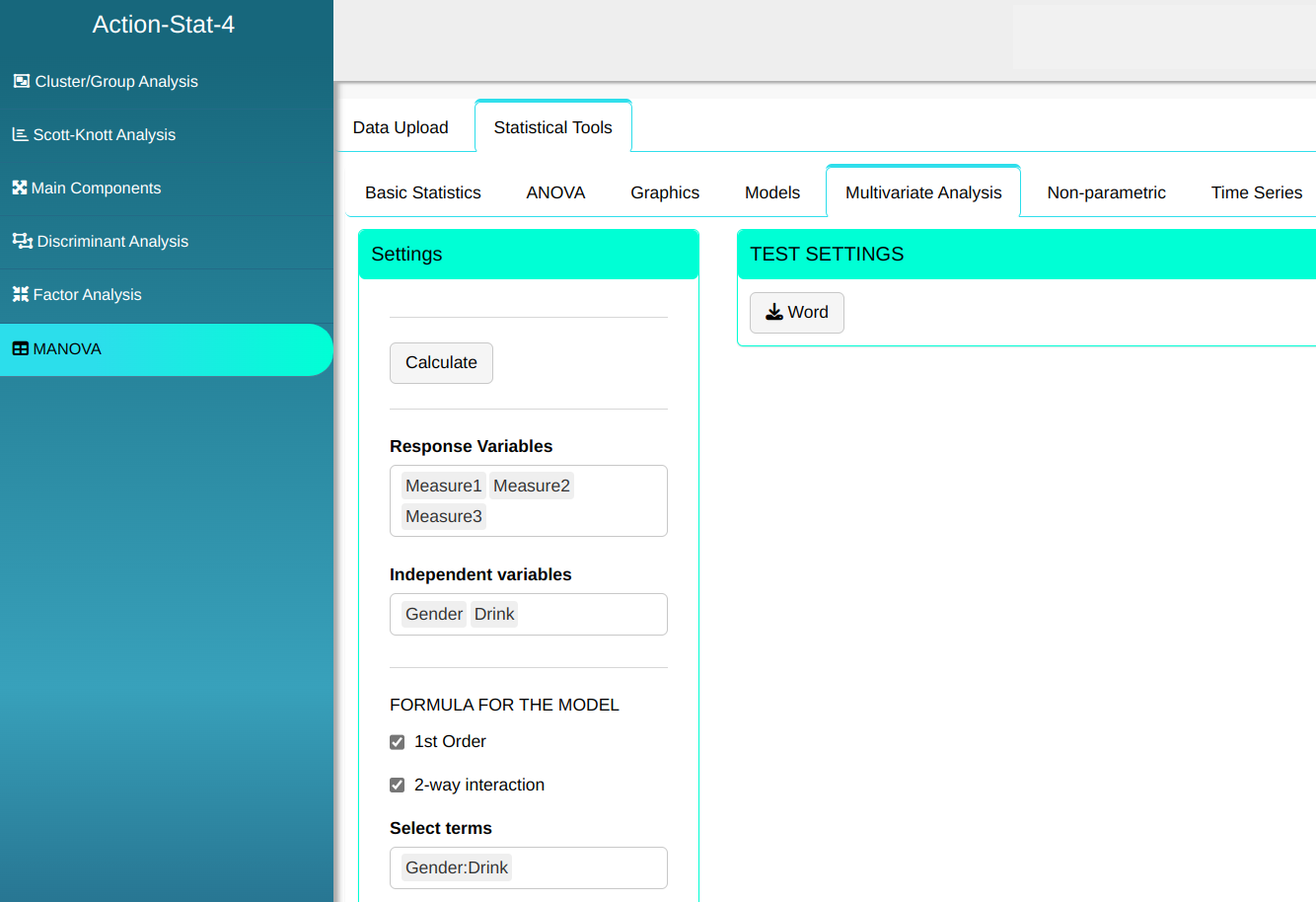 Then click Calculate to get the results. You can also generate the analyses and download them in Word format.