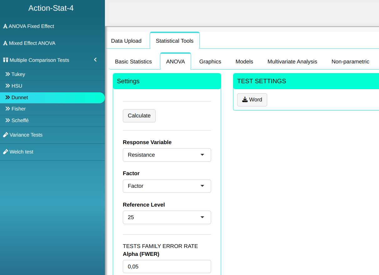 Then click Calculate to get the results. You can also generate the analyses and download them in Word format.