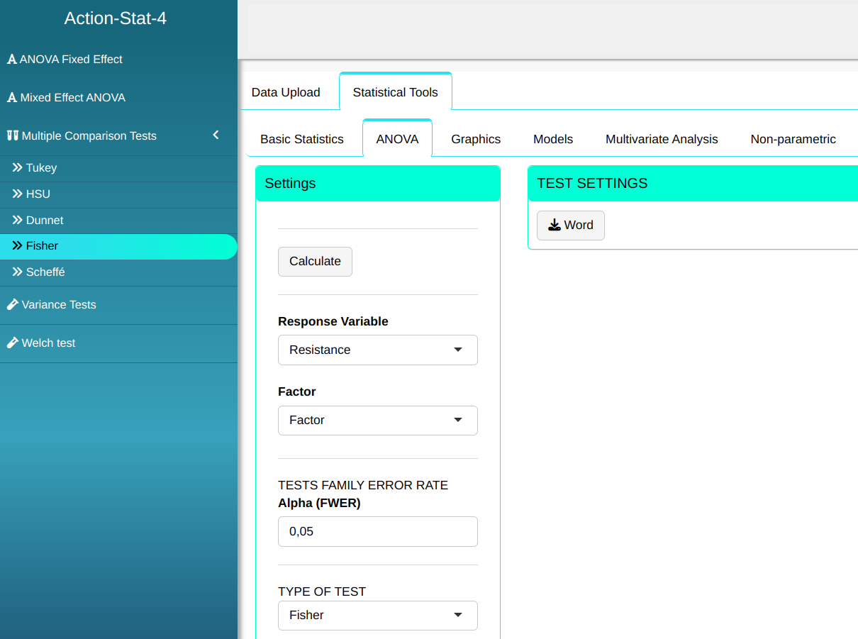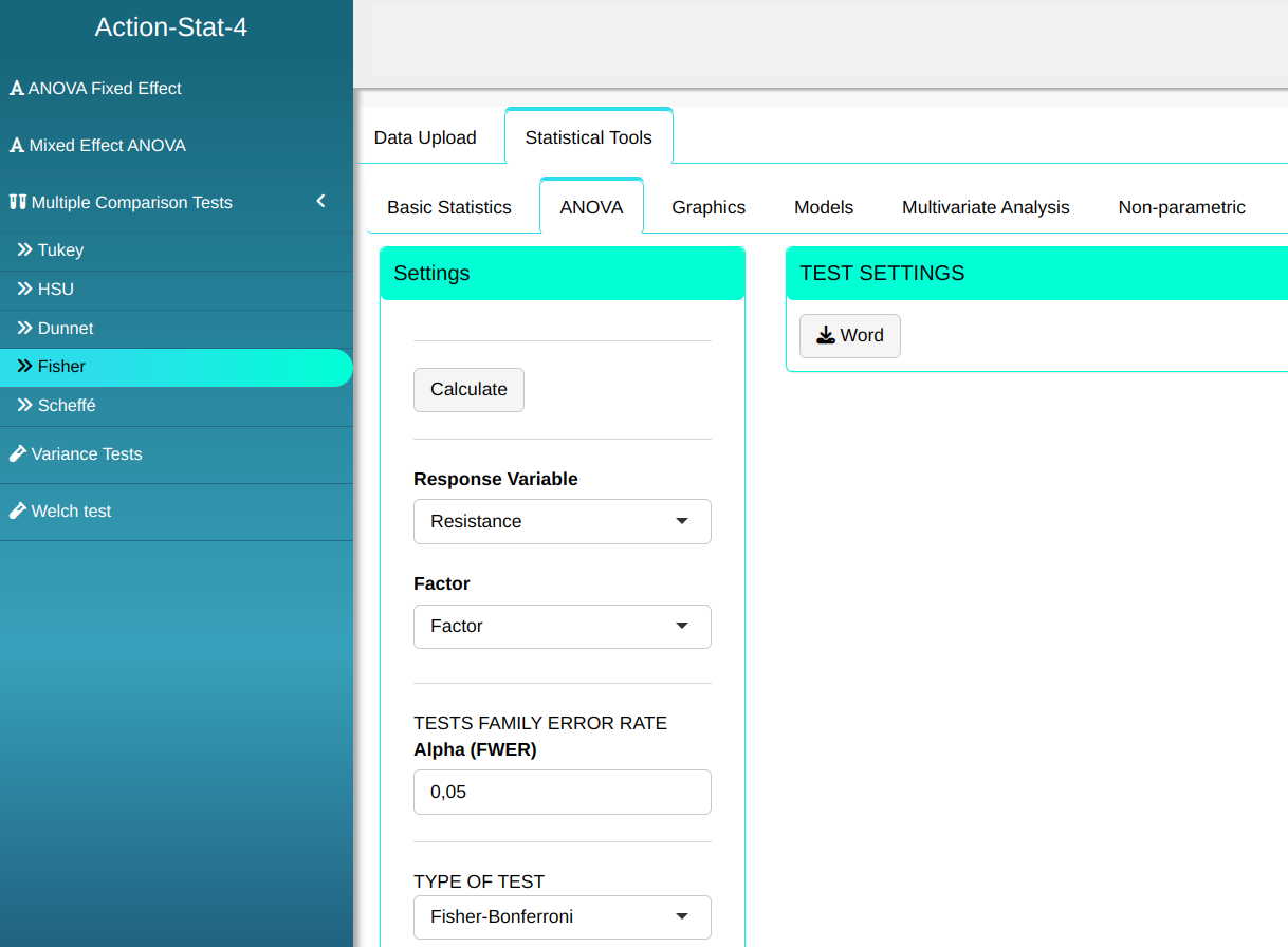 Then click Calculate to get the results. You can also generate the analyses and download them in Word format.