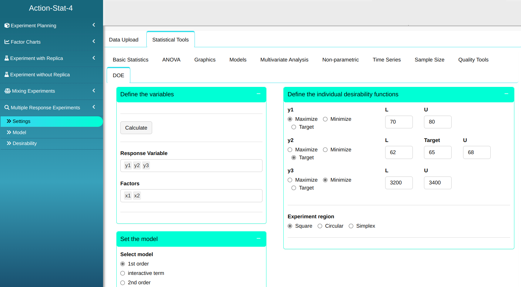 “ACTION” provides this tool that allows you to carry out an Experiment with Multiple Variables and Multiple Responses, and you can create interactive graphs.