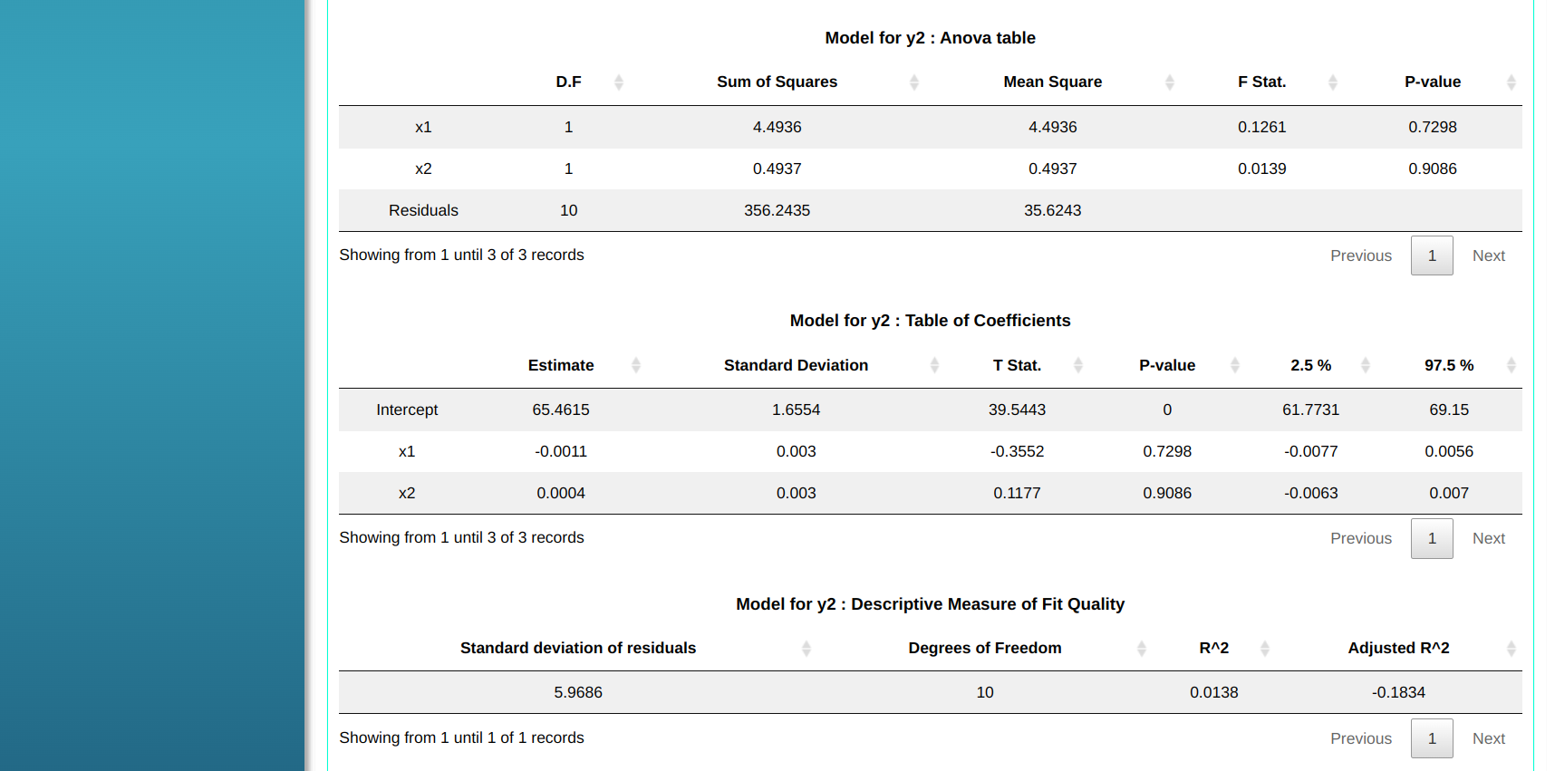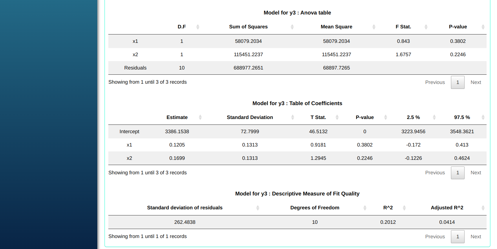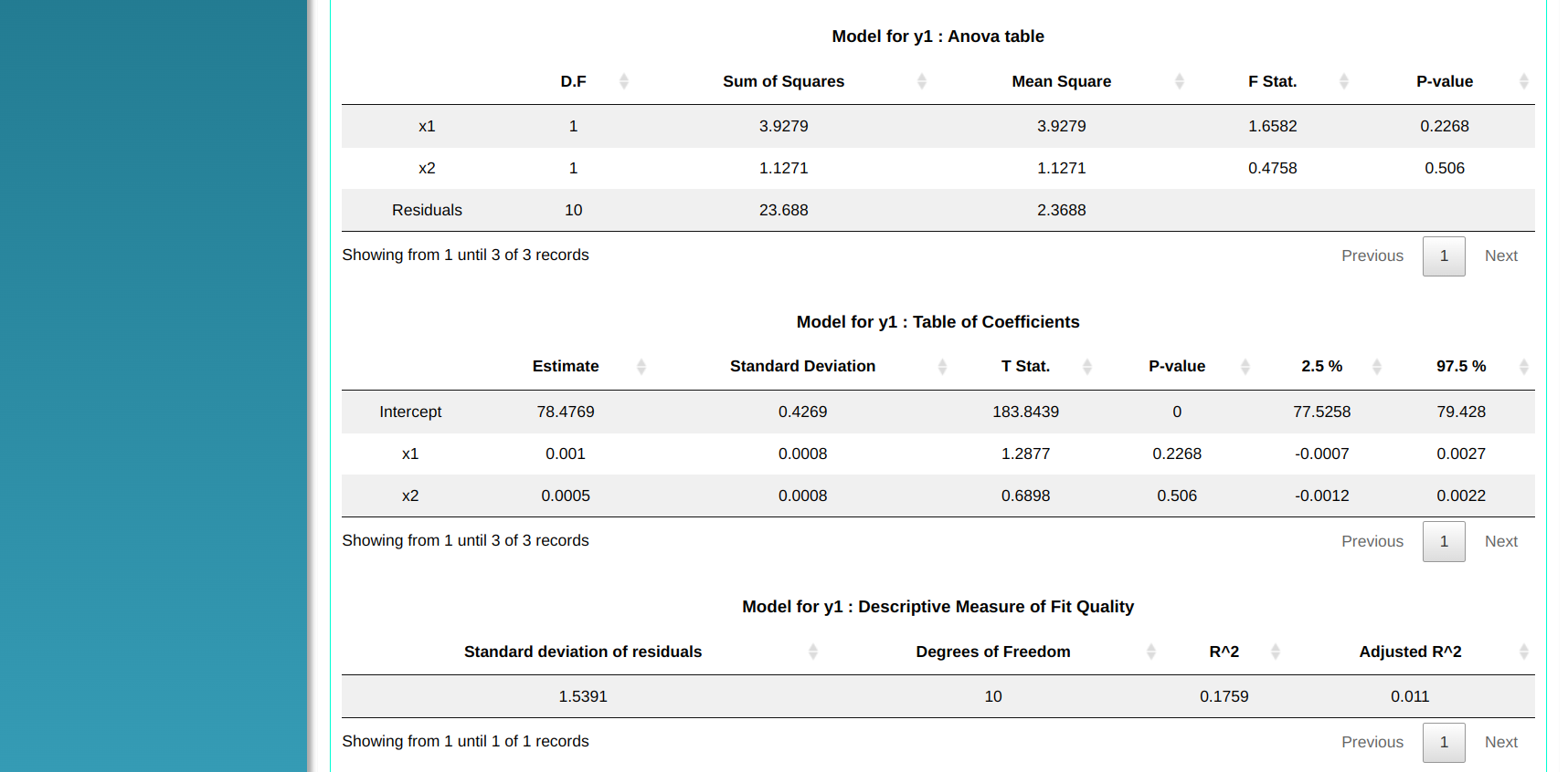 | Standard Deviation of residuals | Degrees of Freedom | R² | Adjusted R² |