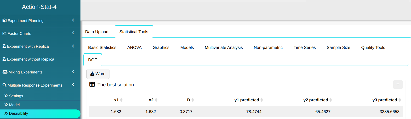 Clicking on Calculate, we can see the results in the “Models” tab And download the results in Word format.