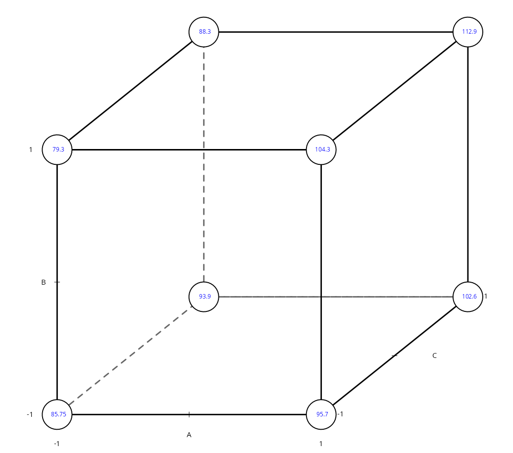 | Number of treatments: | $2^3$ =8 |