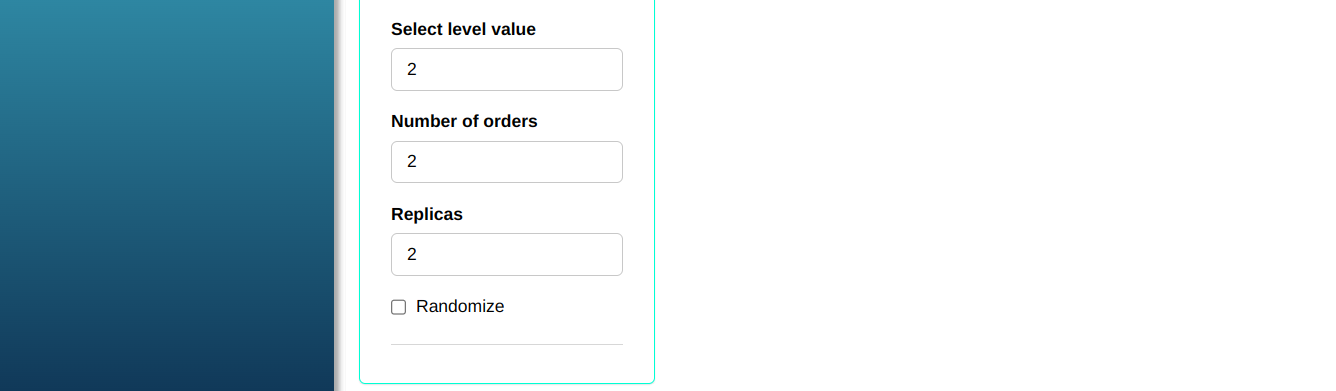 | Order | Block | A | B | C | D | A:B | A:C | B:C | R:D | B:D | C:D | A:B:C | A:B:D | A:C:D | B:C:D | |