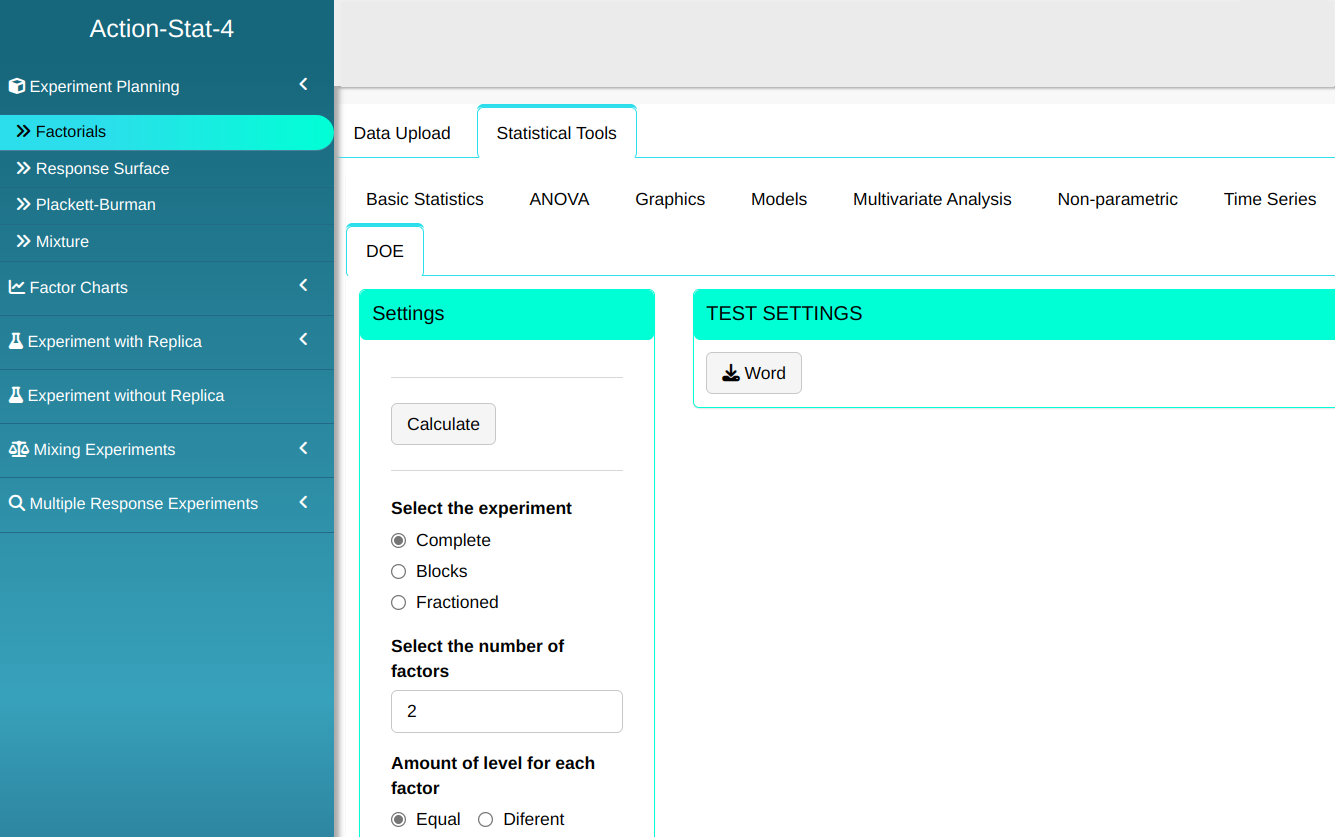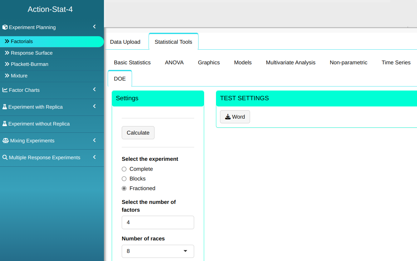 By clicking Calculate we get the results. You can also generate the analyses And download the results in Word format.