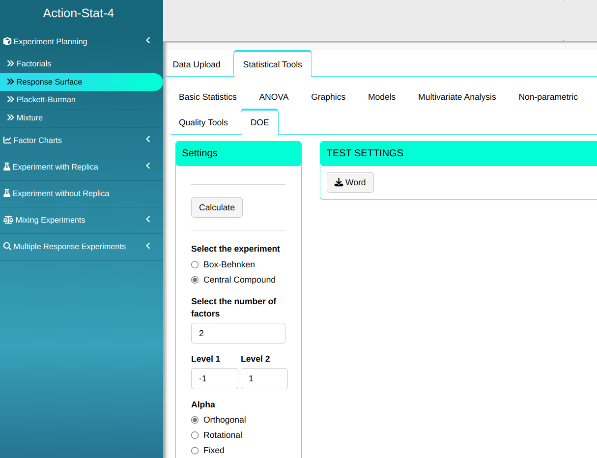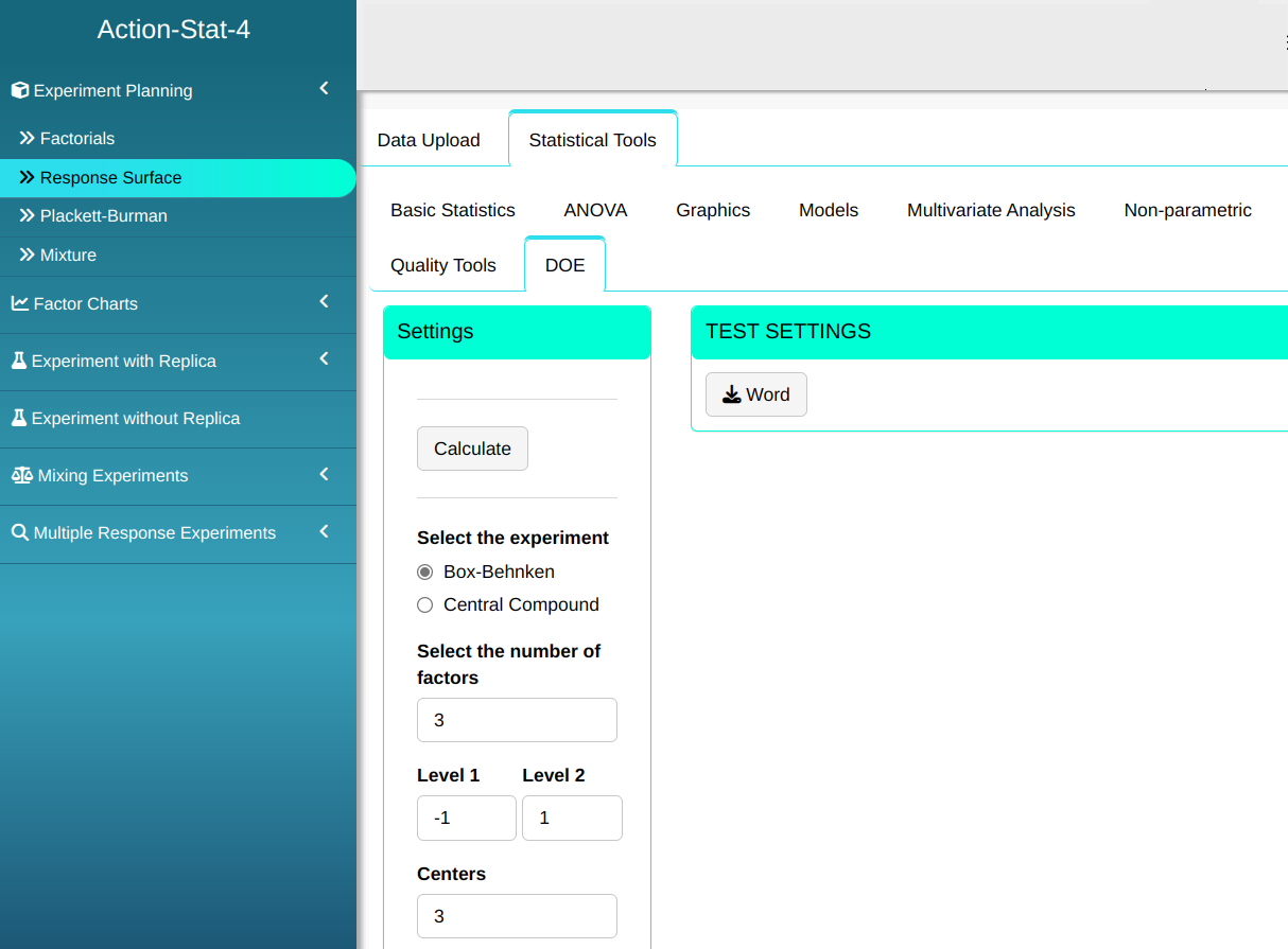 By clicking on Calculate we obtain the results and download the results in Word format.