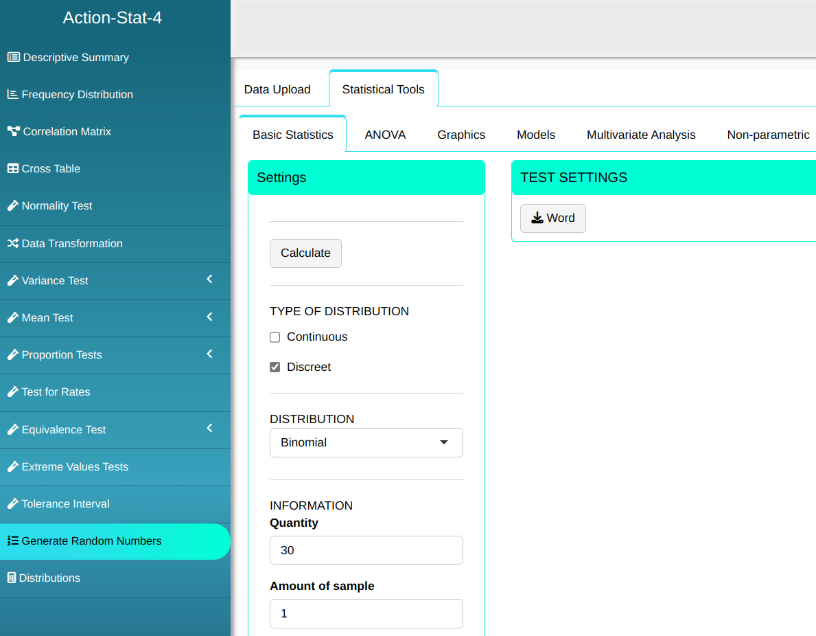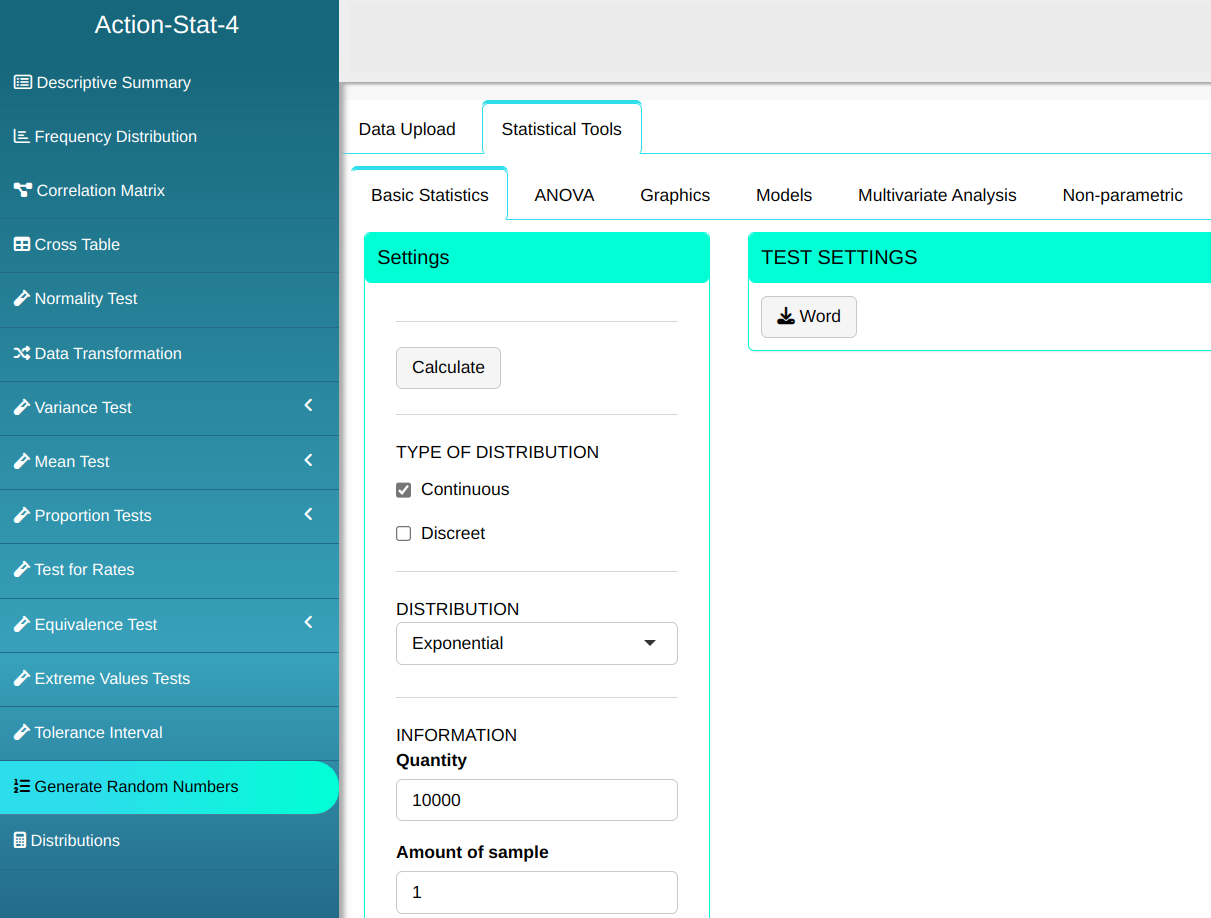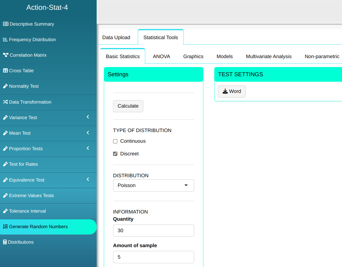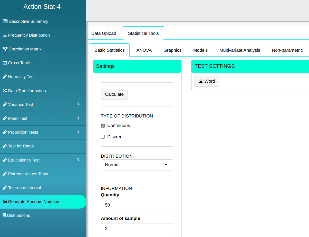 Then click Calculate to get the results. You can also generate the analyses and download them in Word format.