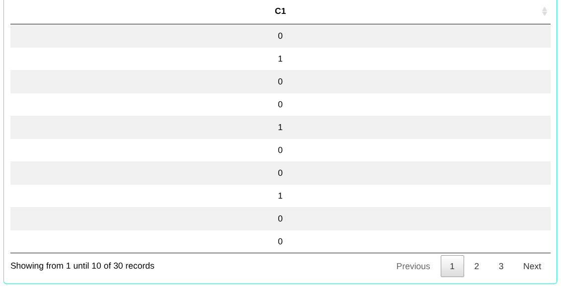 Consider a random variable X with a binomial distribution with parameters n = 30, k = 1 and prob = 0.1. Determine the random sample from the binomial distribution.