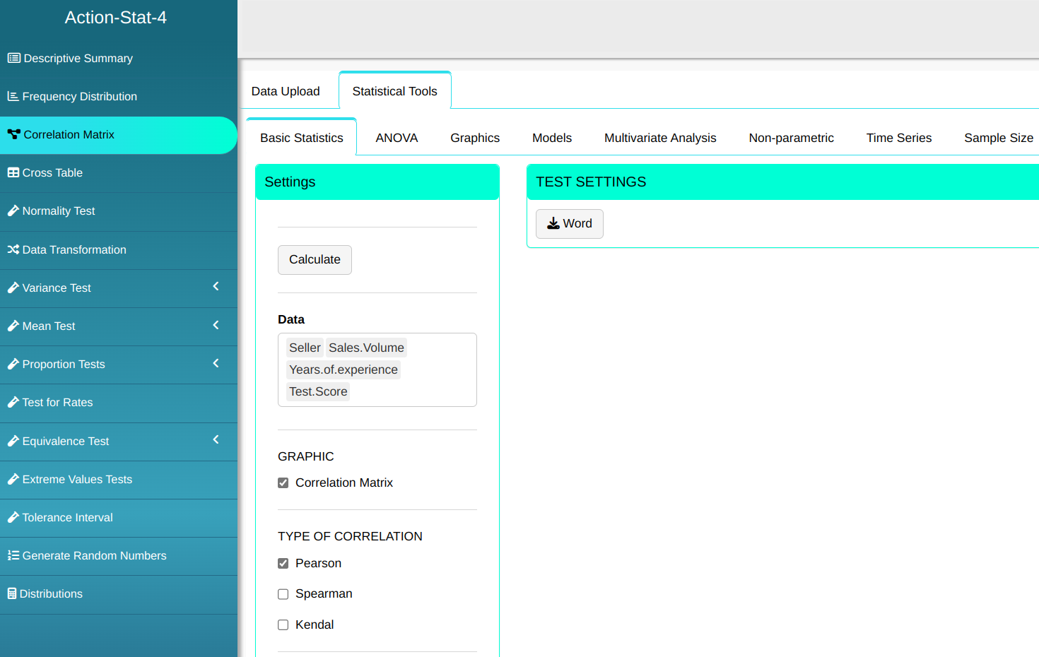 Then click Calculate to get the results. You can also generate the analyses and download them in Word format.