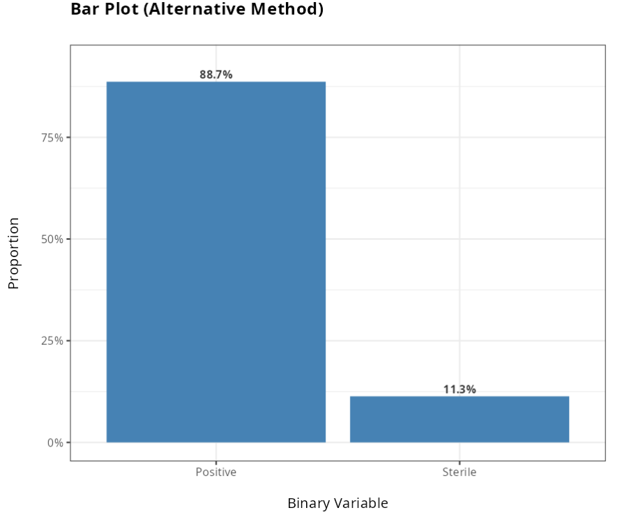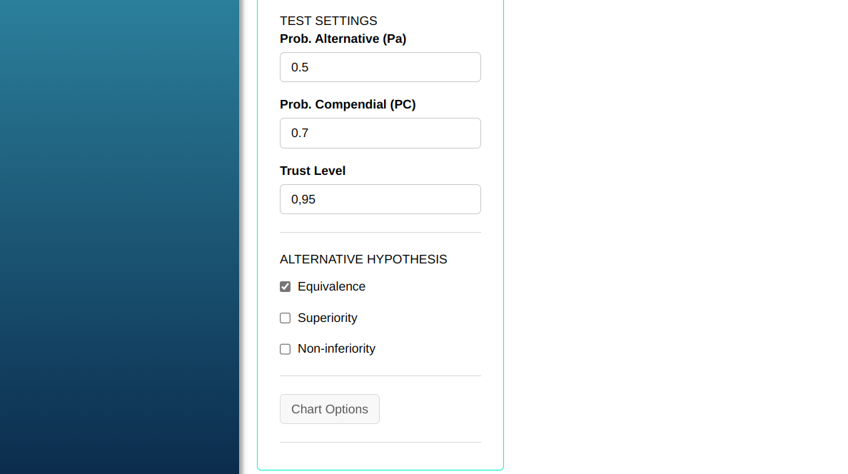This section is based on the United States Pharmacopeia norma [1], which defines the hypothesis of Superiority as the proportion of positive results for the alternative procedure (AP) minus the proportion of positive results for the traditional or compendial procedure (PC). positive results for the alternative procedure (AP) minus the proportion of positive results for the traditional or compendial procedure (CP), with a tolerance margin of Superiority (Delta = 0.2). The hypothesis of Superiority is given by:
