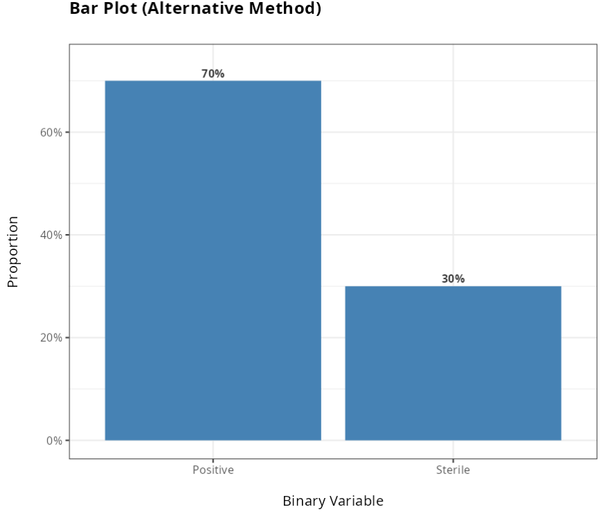 In this example, we want to test whether a new methodology is superior to the compendial methodology. To do this, the proportion of positive results for both methods is evaluated. The summarized data is given in the following table.