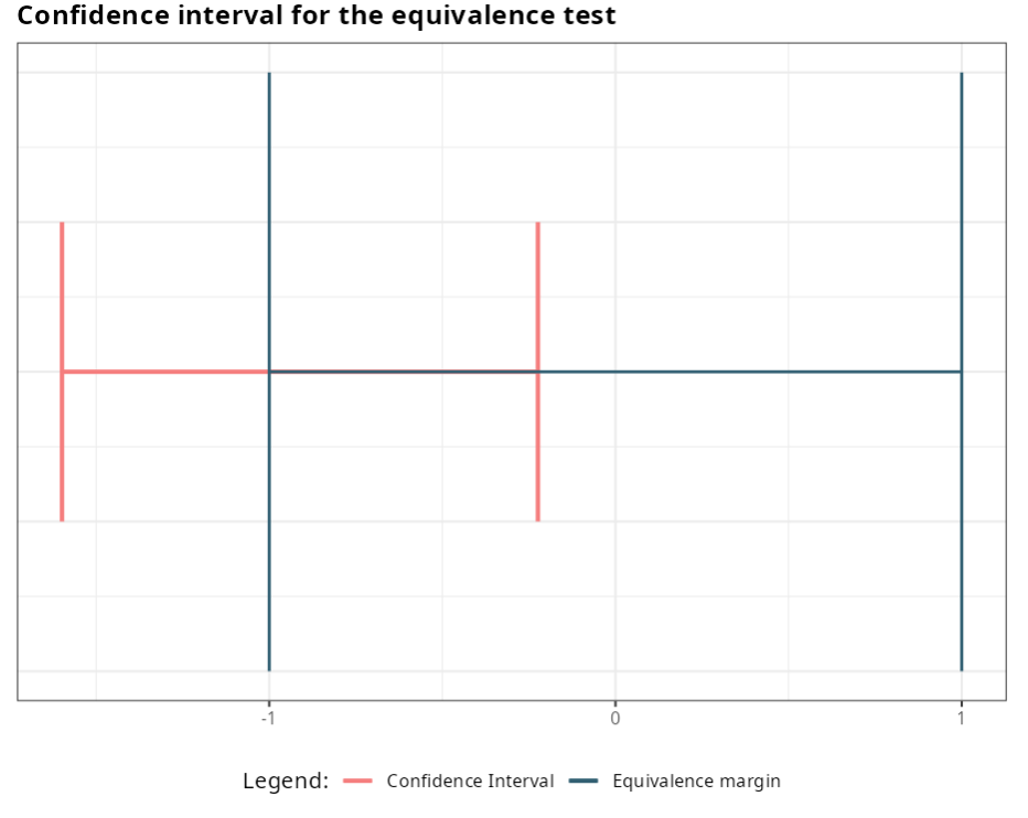 Next, we present the graph containing the confidence interval and the margin of equivalence.