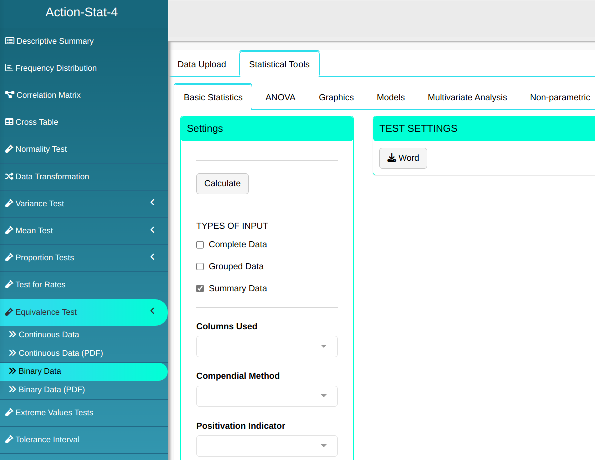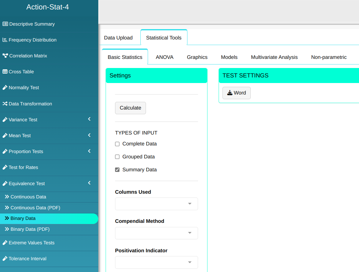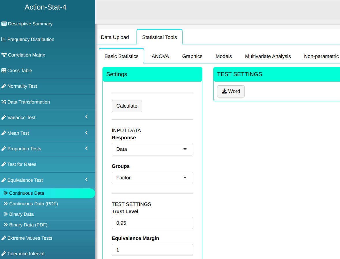 Then click Calculate to get the results. You can also generate the analyses and download them in Word format.