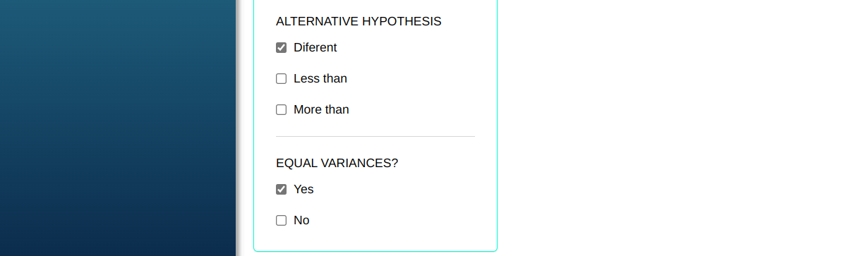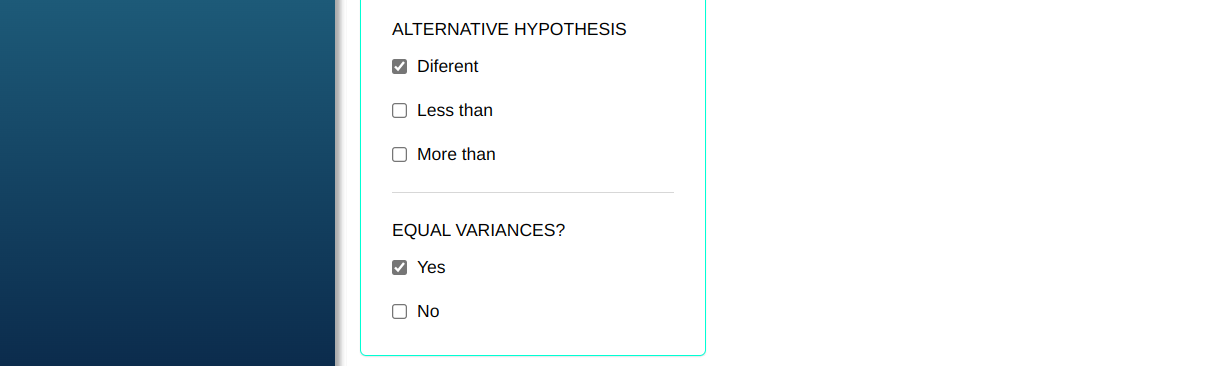 We want to test the equality of the means of two populations that have equal variances. A sample was taken from each population, as shown in the following Tables.