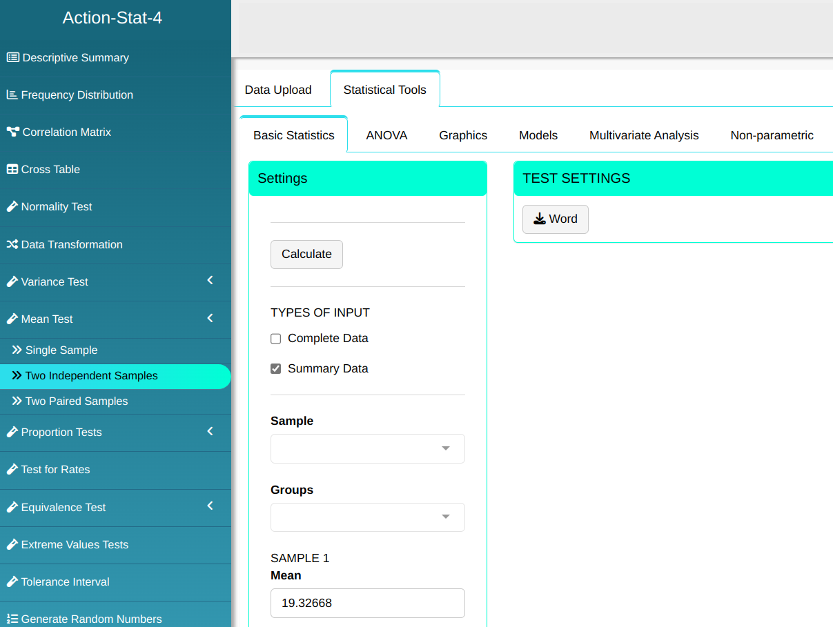 Then click Calculate to get the results. You can also generate the analyses and download them in Word format.