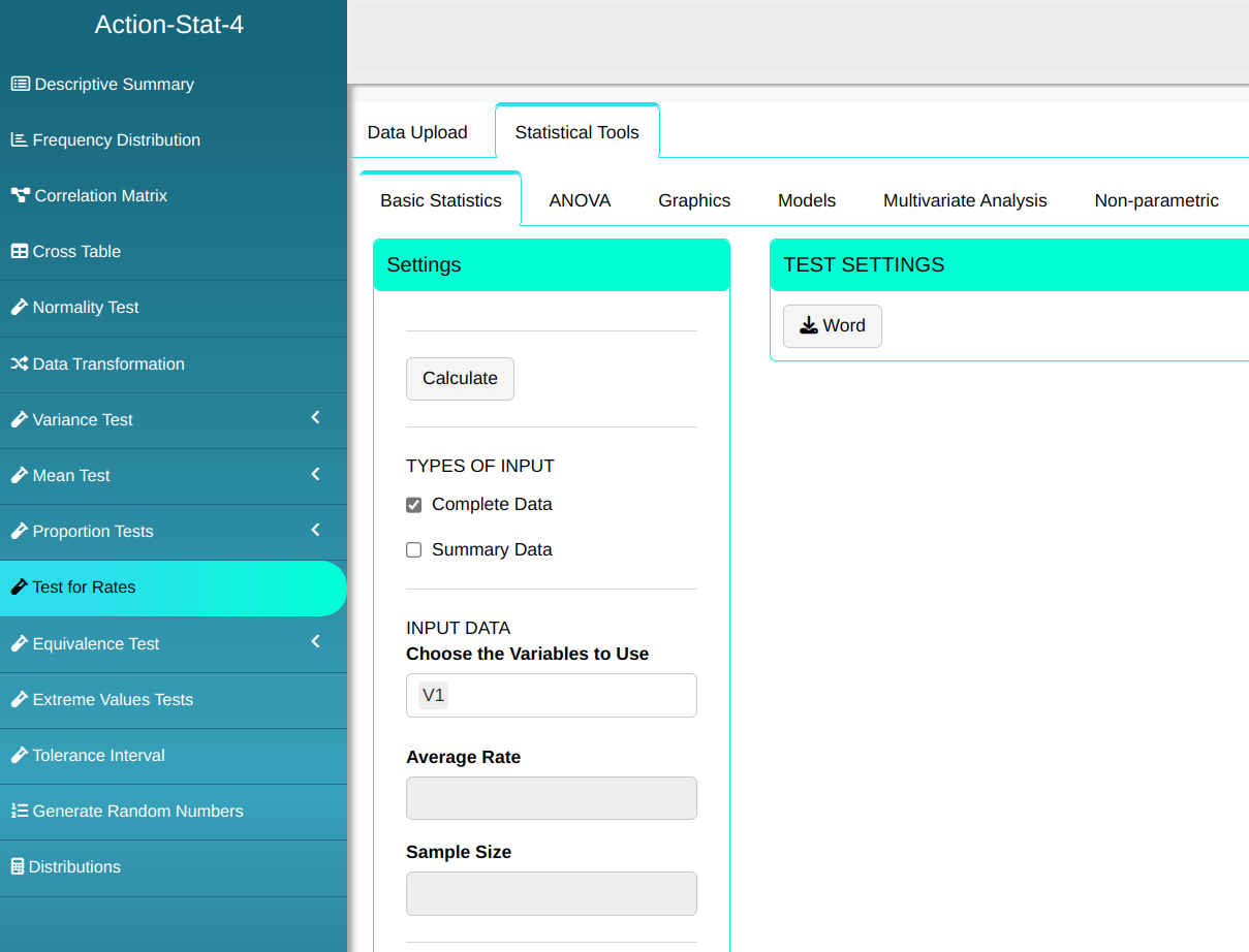 Then click Calculate to get the results. You can also generate the analyses and download them in Word format.