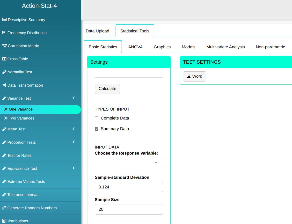Then click Calculate to get the results. You can also generate the analyses and download them in Word format.