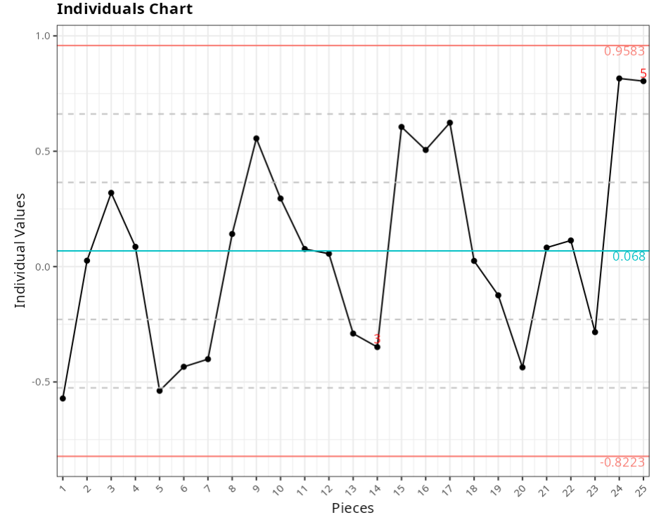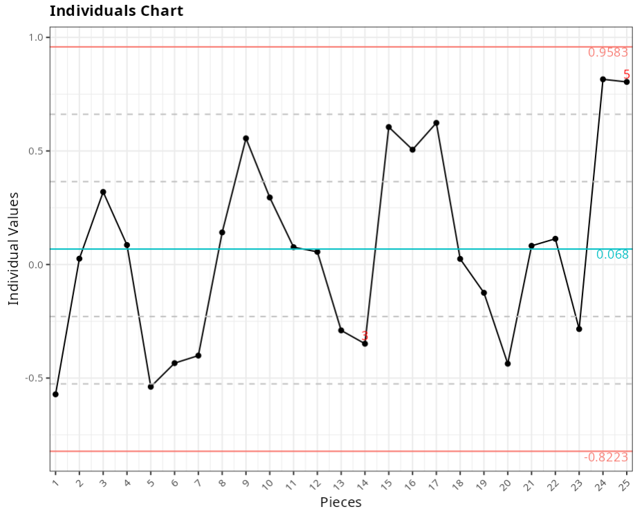 | 25 | 0.811 | Eight or more consecutive points greater than 1 sigma from the center line |