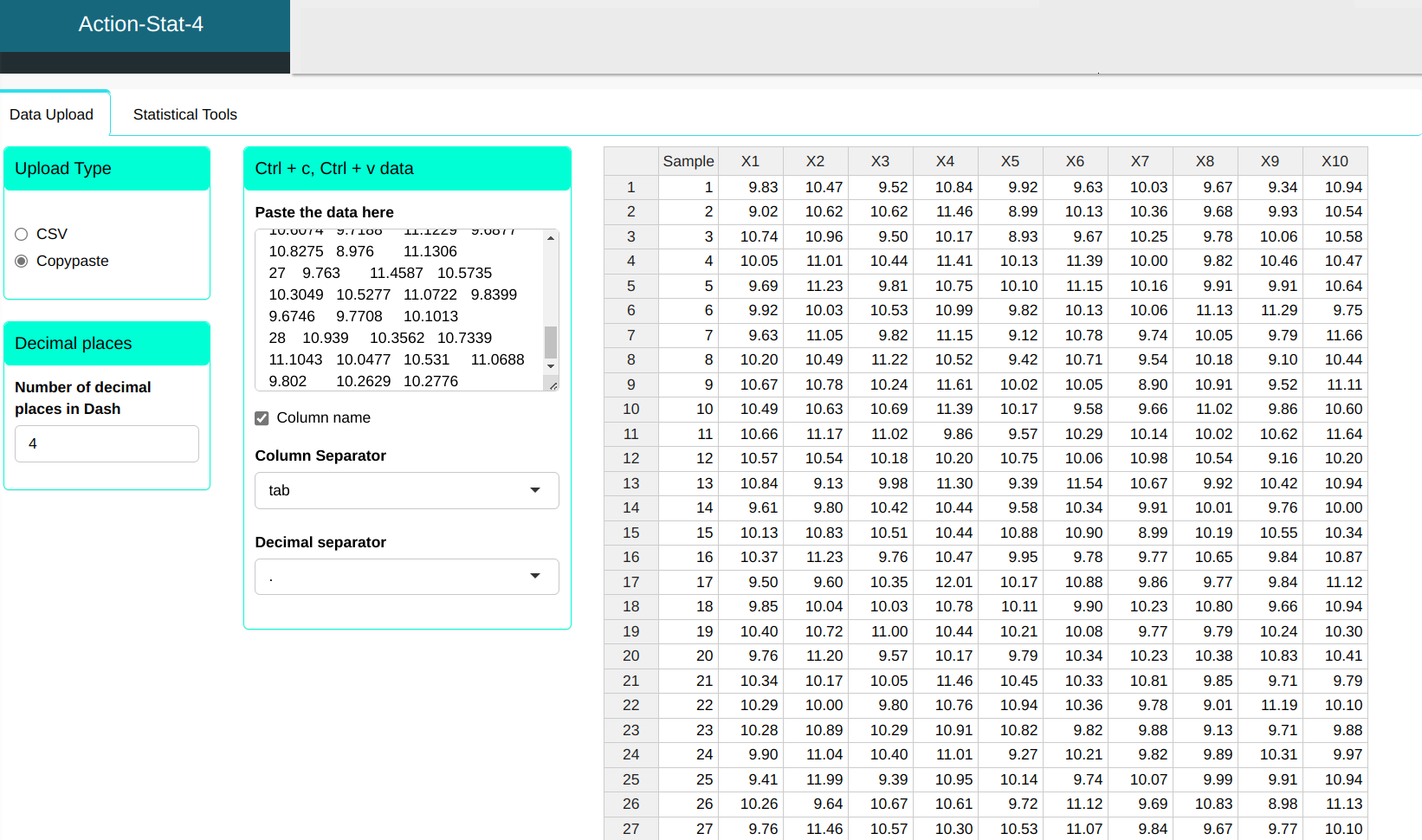 “ACTION” provides the Charts by Variables with Subgroups tool that allows you to generate Mean and Amplitude ($\overline{X}$ and R) Mean and Standard Deviation ($\overline{X}$ and S) graph and Individual Values Graphs with Variation Between and Within Groups (I-MR-R or I-MR-S).