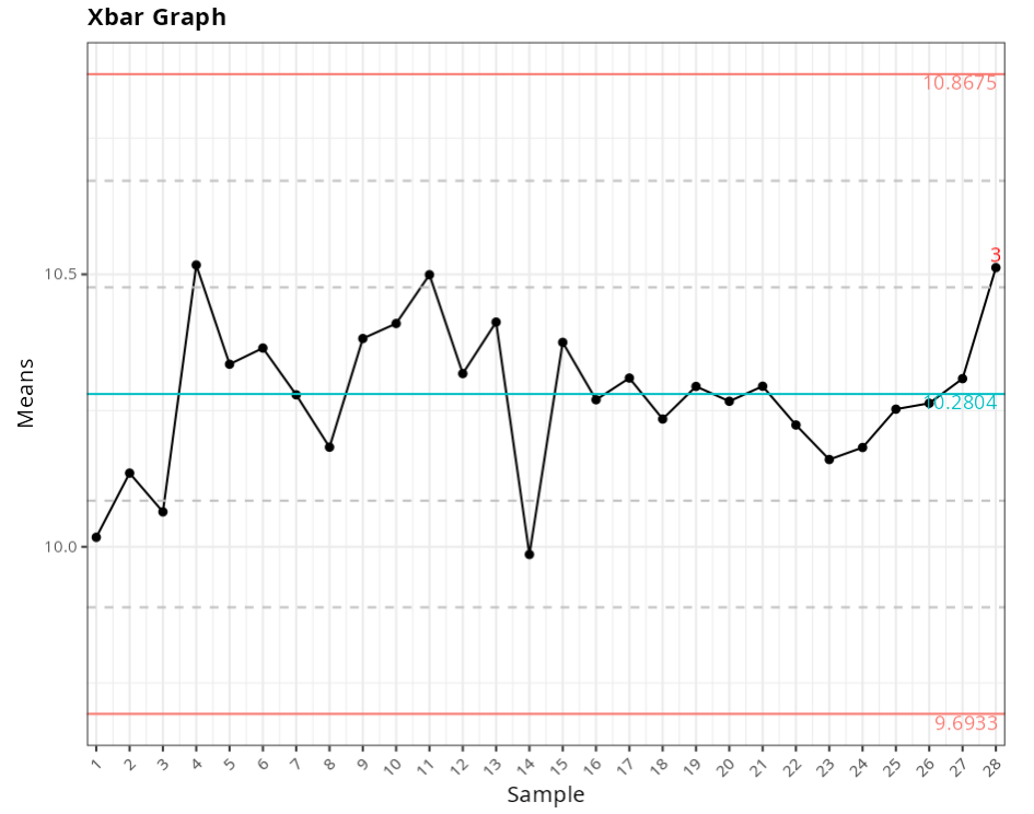 | 26 | 0.728 | 2 of 3 consecutive points greater than 2 sigmas from the center line |