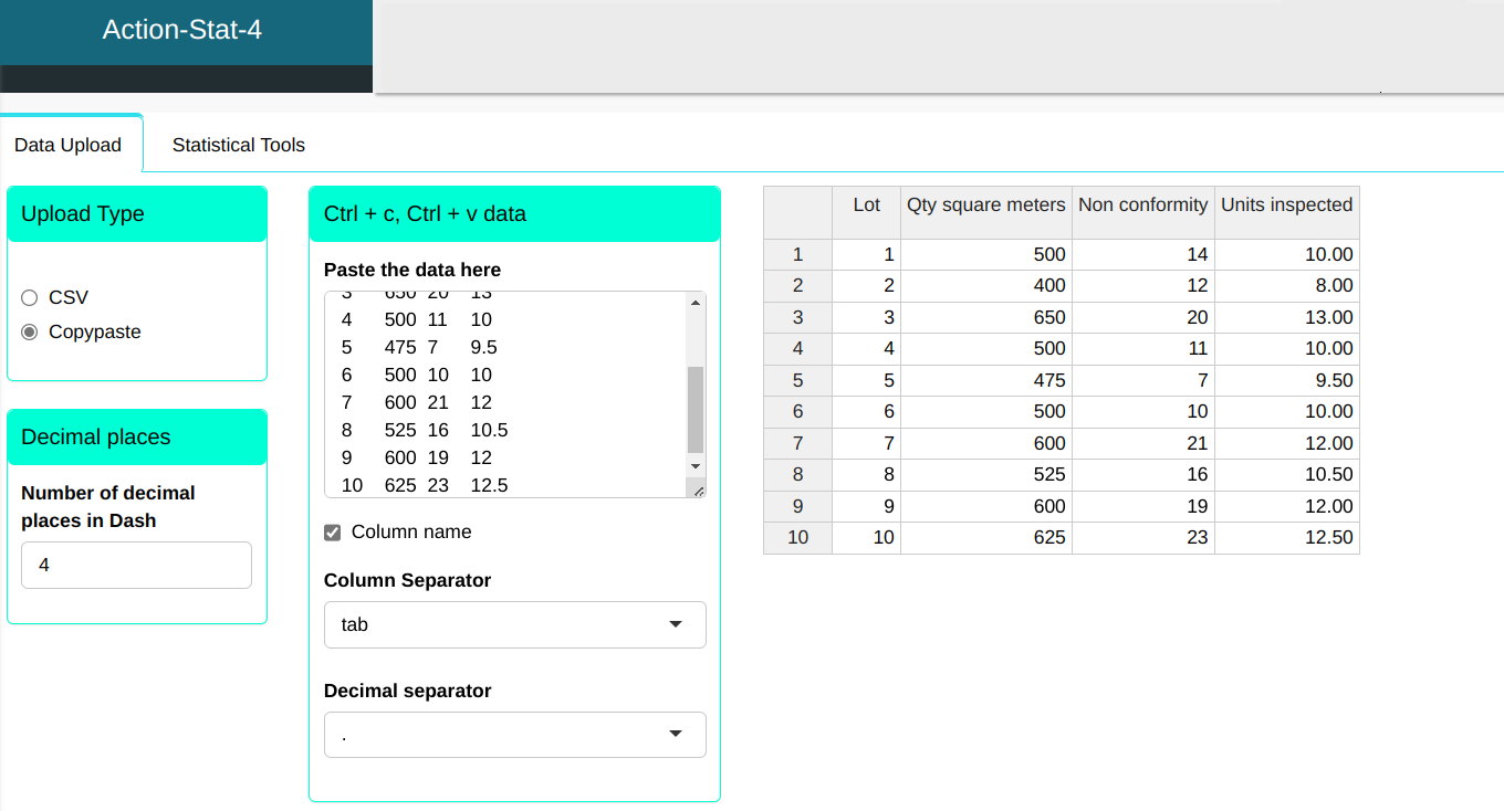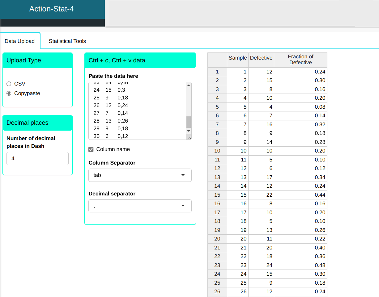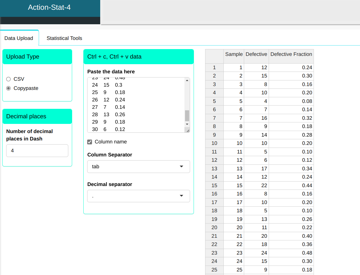 | Center line | Lower Limit | Upper Limit | Fraction Nonconforming |