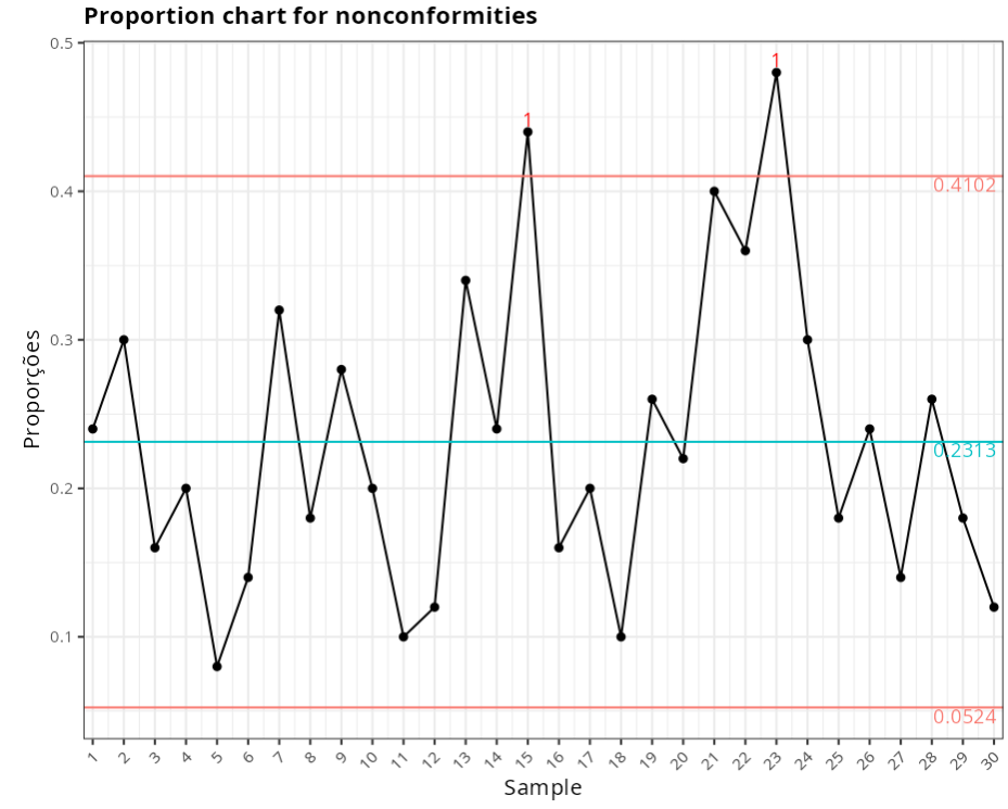 Proportion chart for nonconformities