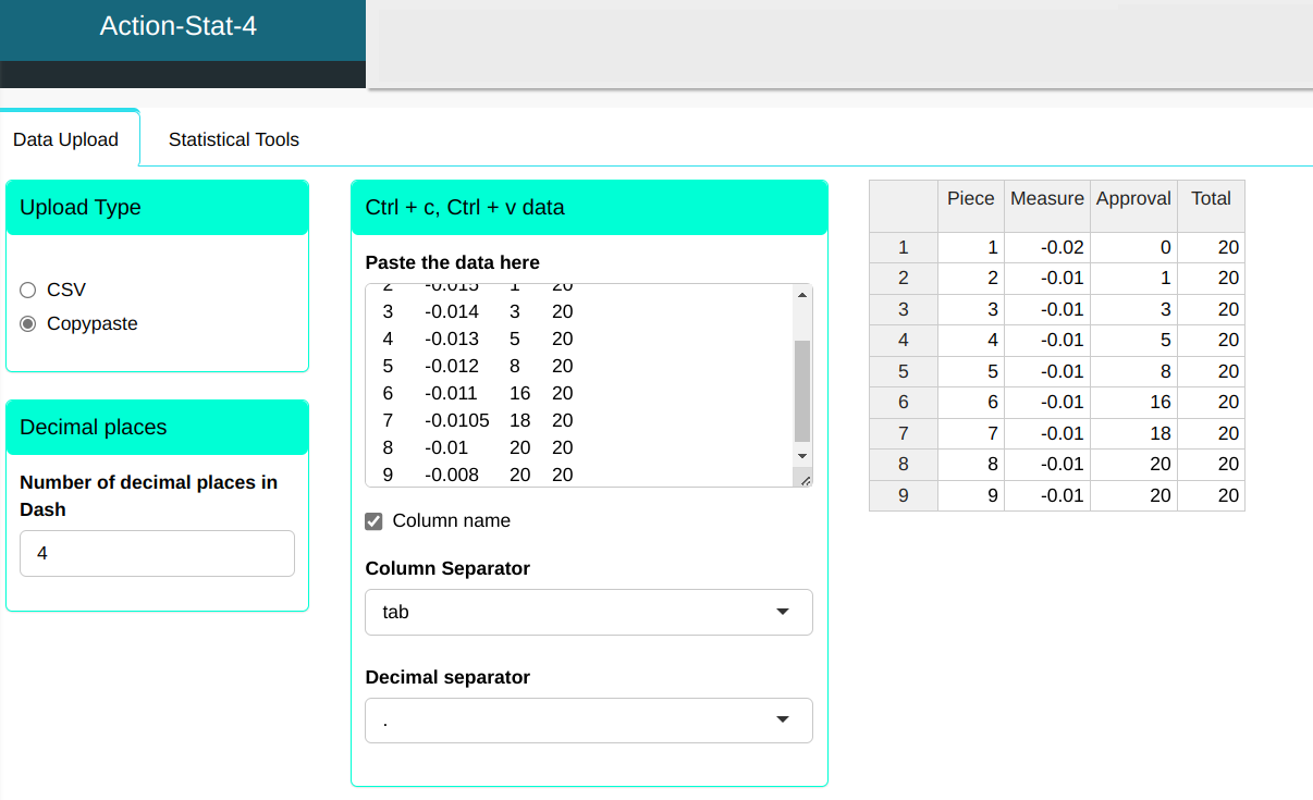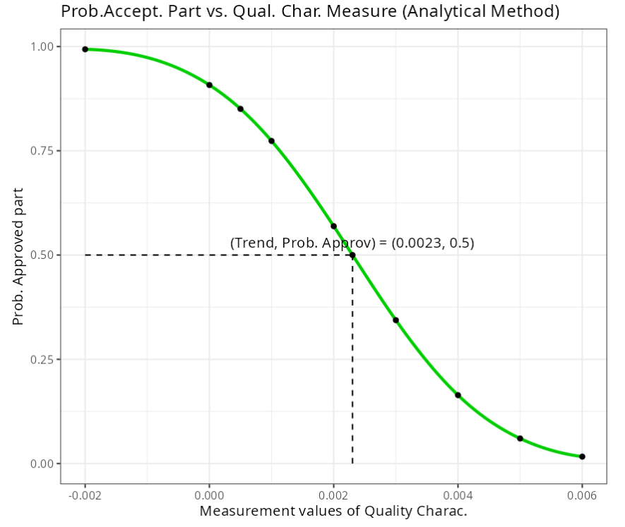 The method analytical for analysis of the measurement system classifies the parts as defective or not. This method compares each part to a specific set and accepts the part if the limits are satisfied, otherwise, it is rejected the piece.