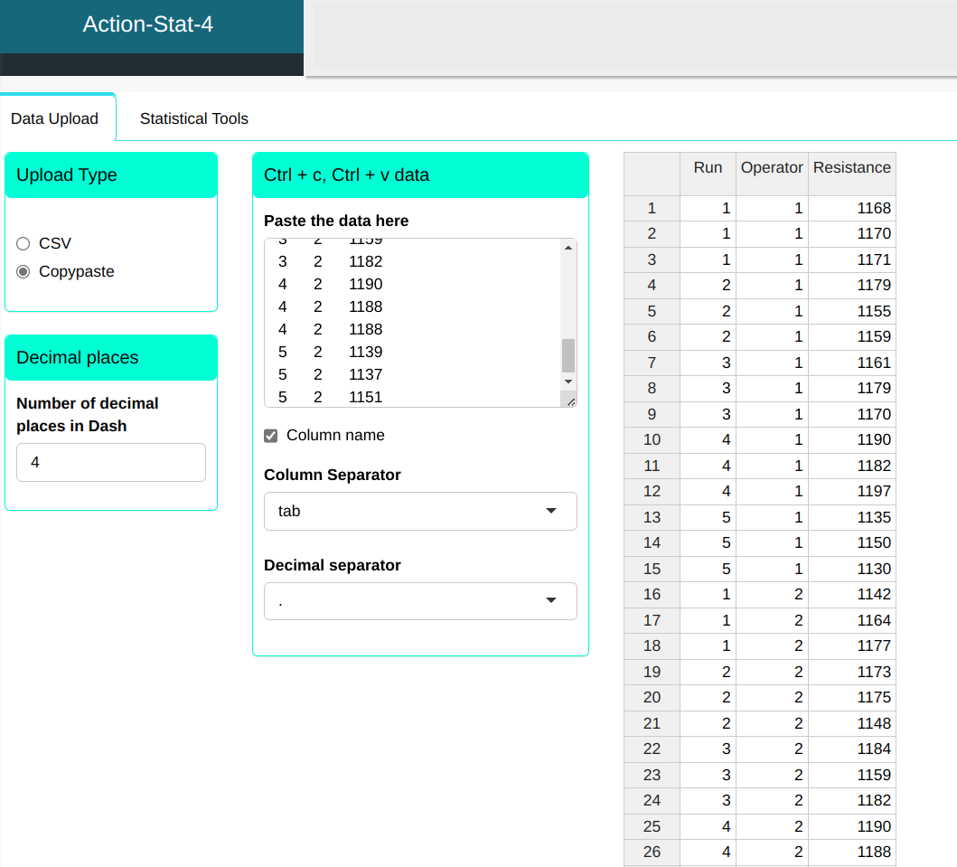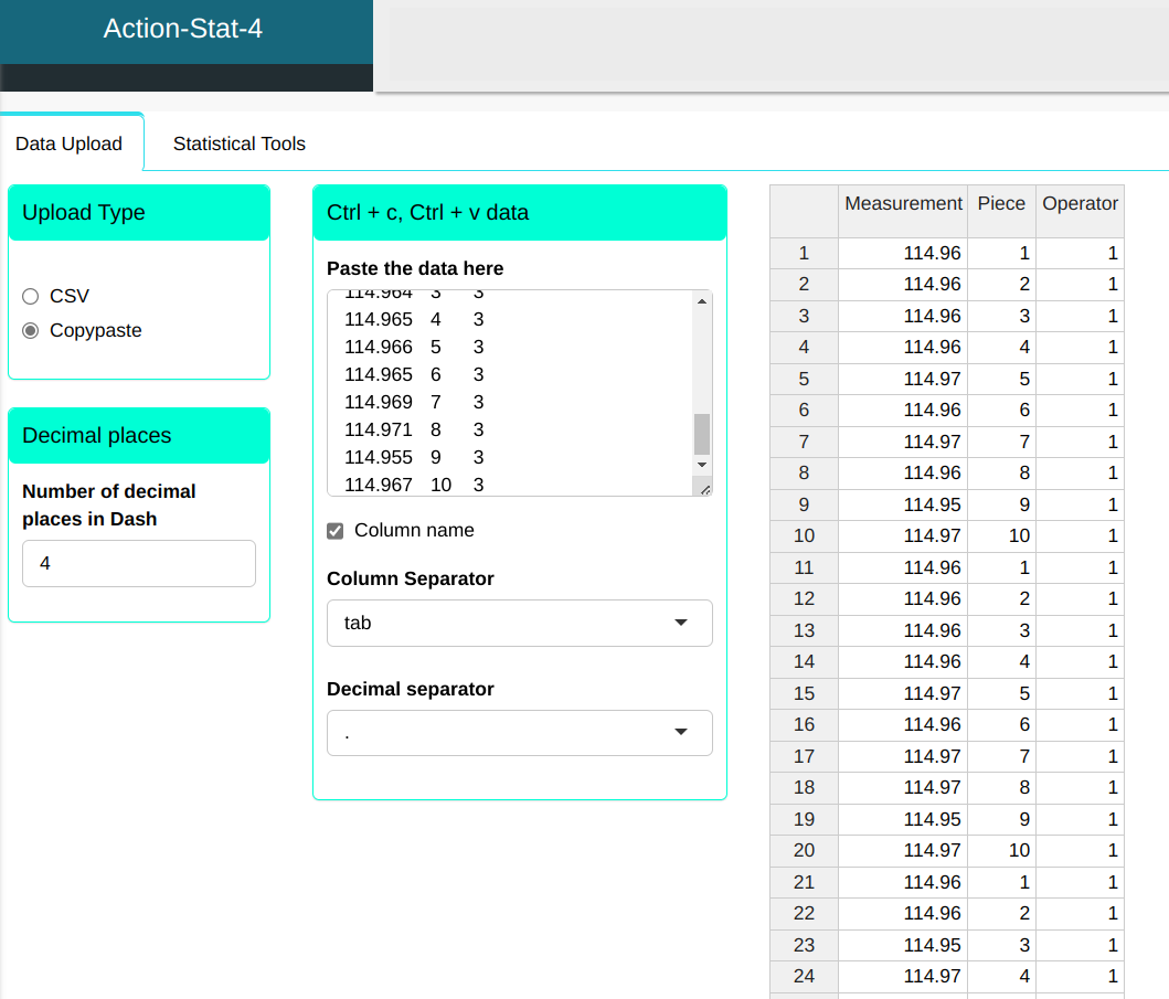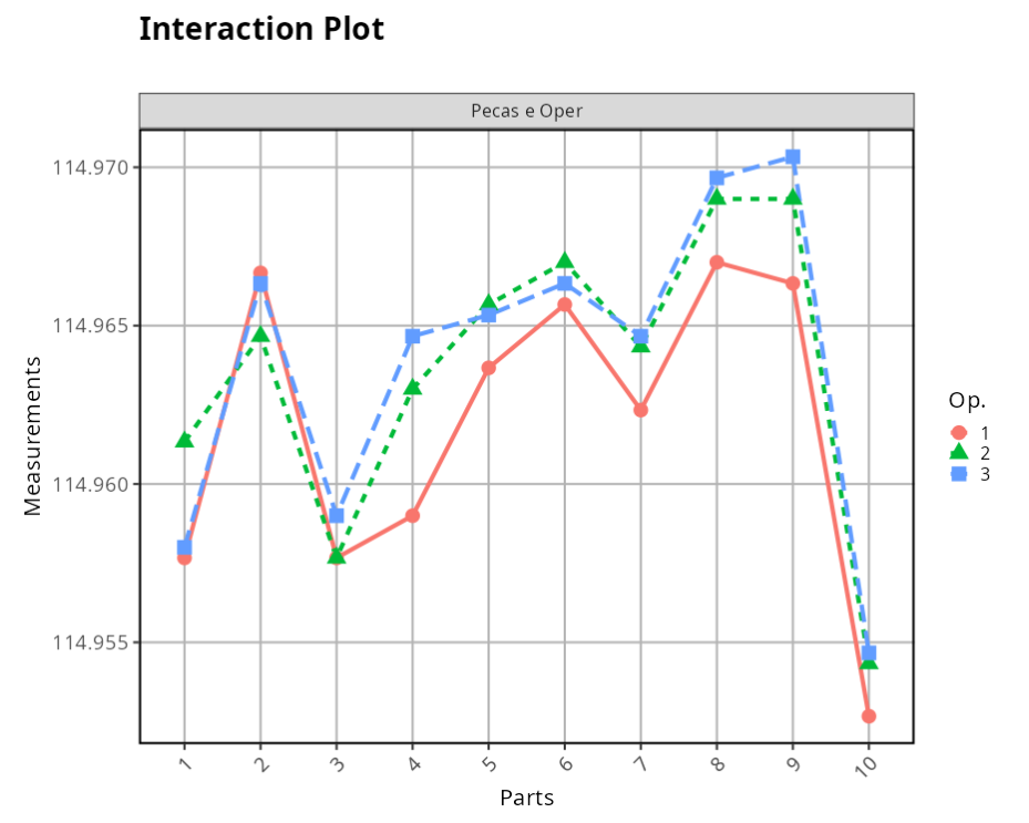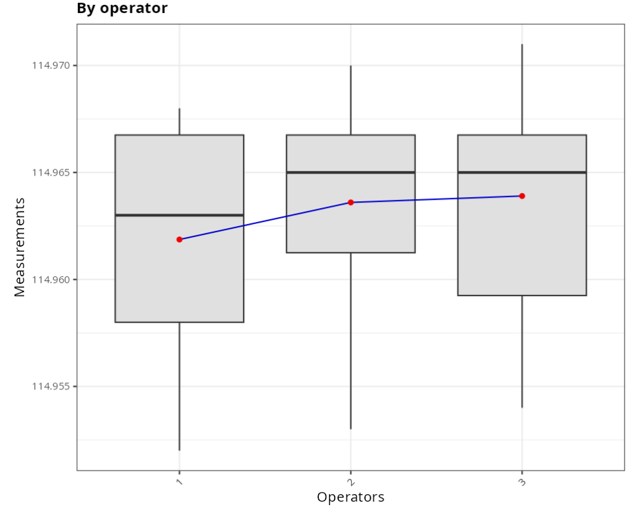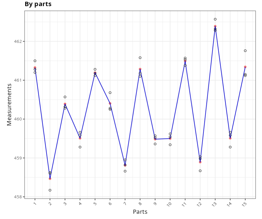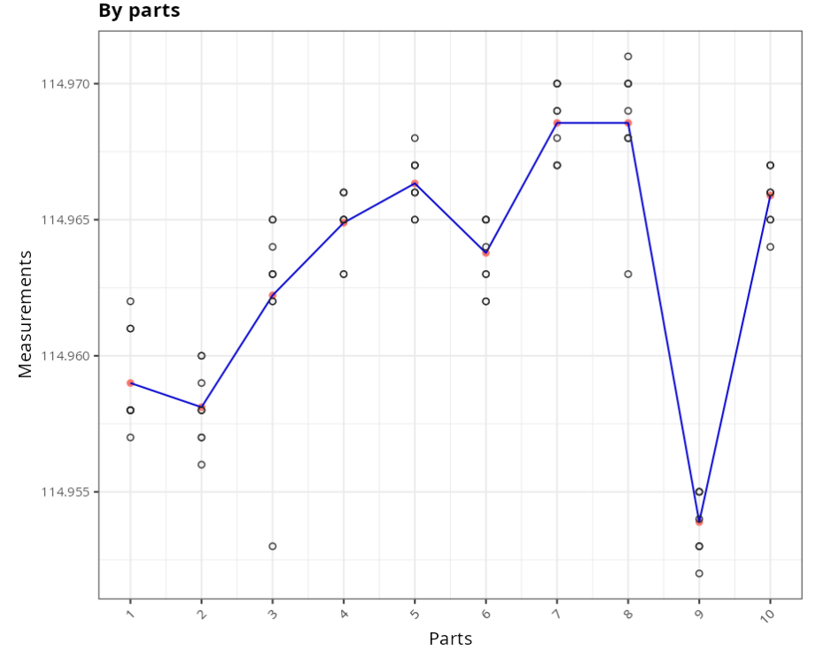 Consider a measuring system for measuring the internal diameter of a bearing. The quality engineer carried out an experiment with 10 parts, 3 operators and 3 repetitions for each operator and part. he data referring to this experiment is set out in the .CSV file