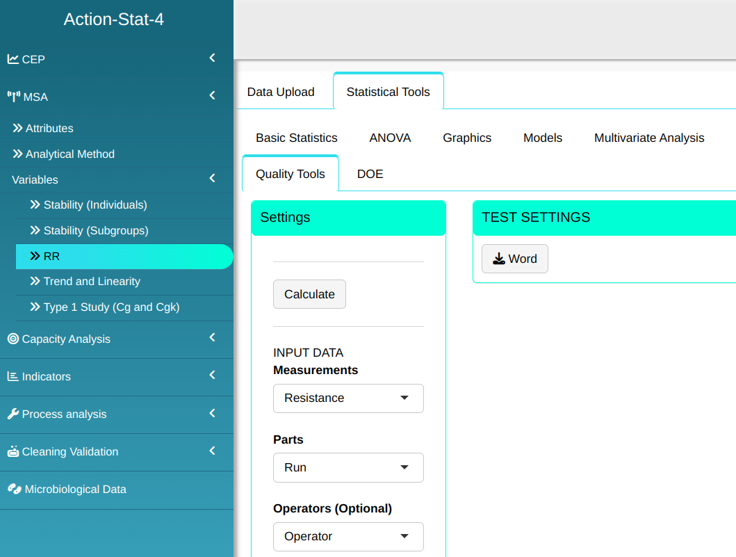 Then click Calculate to get the results. You can also generate the analyses and download them in Word format.