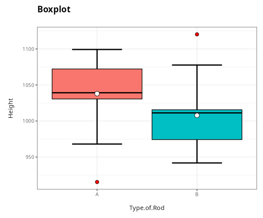 Let’s consider two types of rods, A and B, Make a Boxplot and compare the two types of rods.