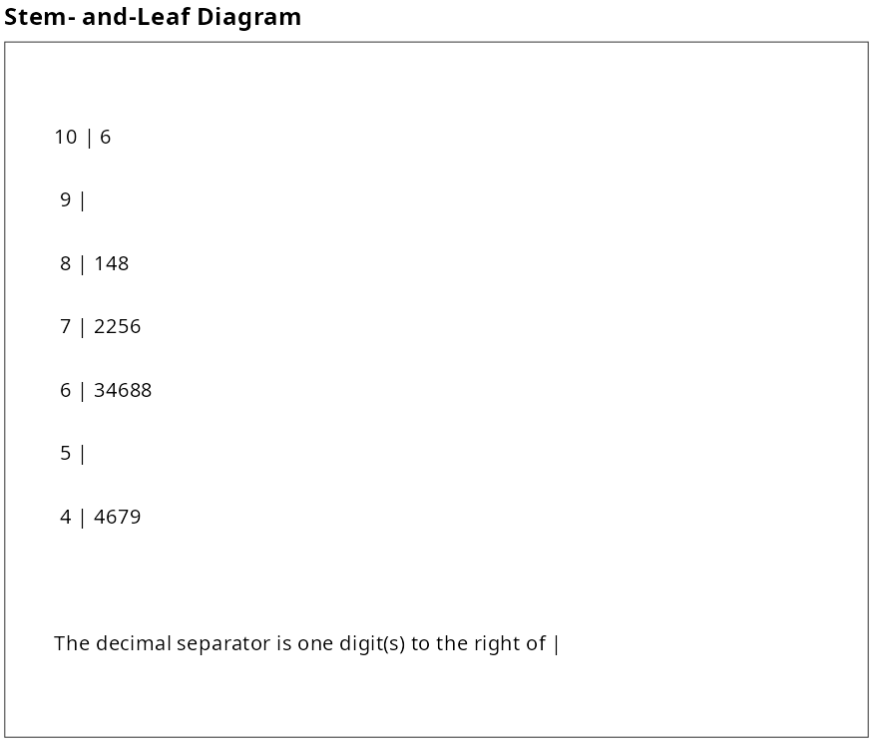 The first line of the graph means that we have an observation 106, the 9 no number after the forward slash means that in the data set, We do not have any number between 90 and 99.
