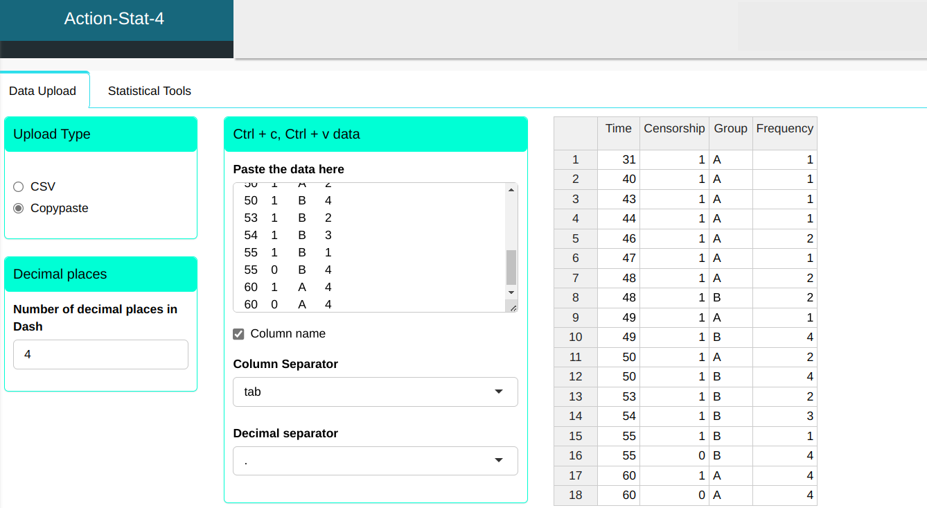 First, let’s organize the data in a new table, where we replace the + symbol with the indicator 0 (censure) and for the other values we put the indicator 1 (failure).