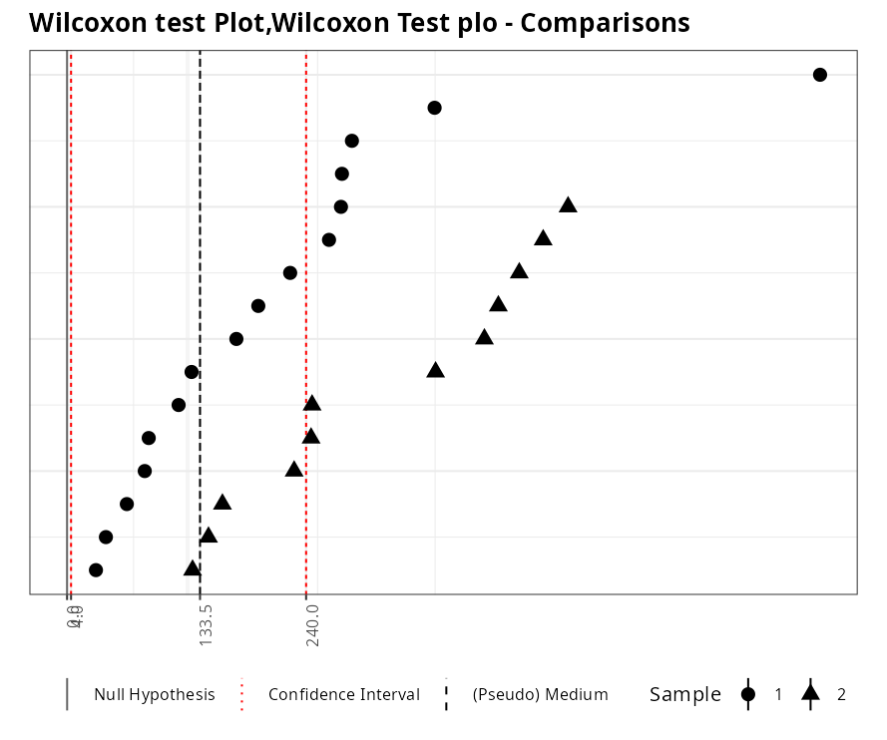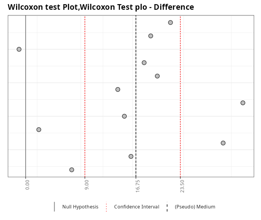 Using the Wilcoxon test, we tested the pseudo medians, for the sample single, independent and paired samples.