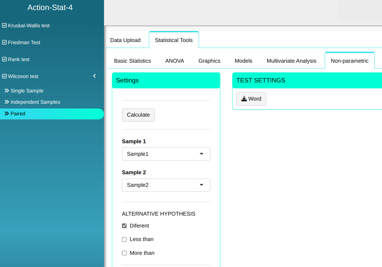 Then click Calculate to get the results. You can also generate the analyses and download them in Word format.